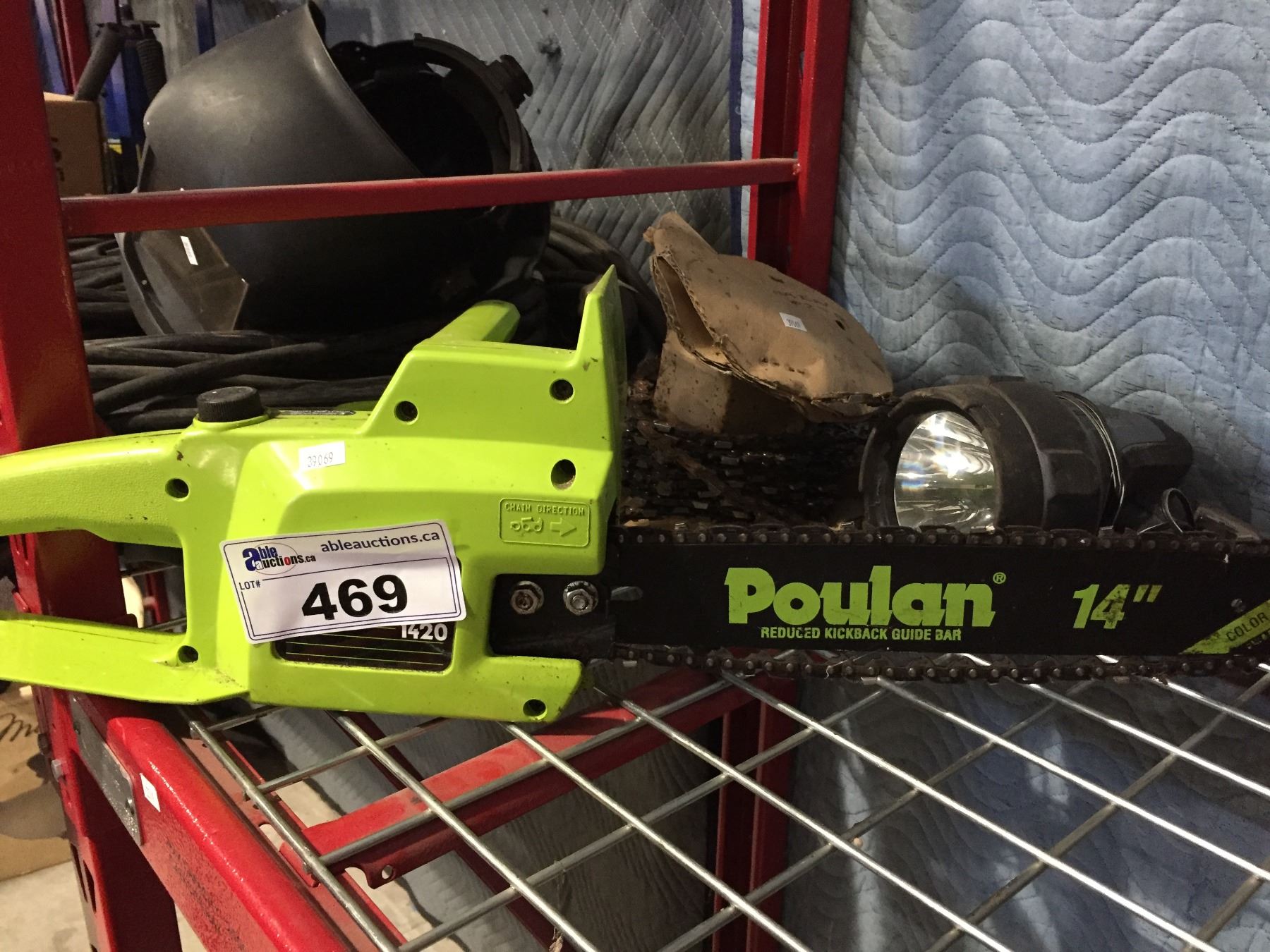 POULAN 14" ELECTRIC CHAINSAW, WORKLIGHT & EXTRA SAWBLADE