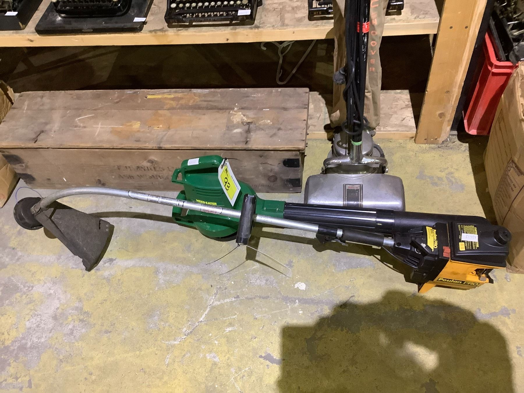 POULAN PRO GAS WEED WHACKER, GROUNDSKEEPER ELECTRIC LEAF BLOWER & VINTAGE HOOVER COMMERCIAL UPRIGHT