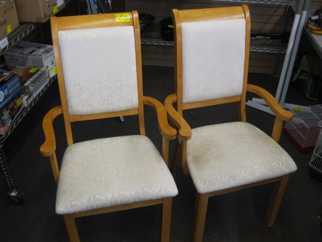 PR OF 2 WOOD FRAMED UPHOLSTERED ARMCHAIRS