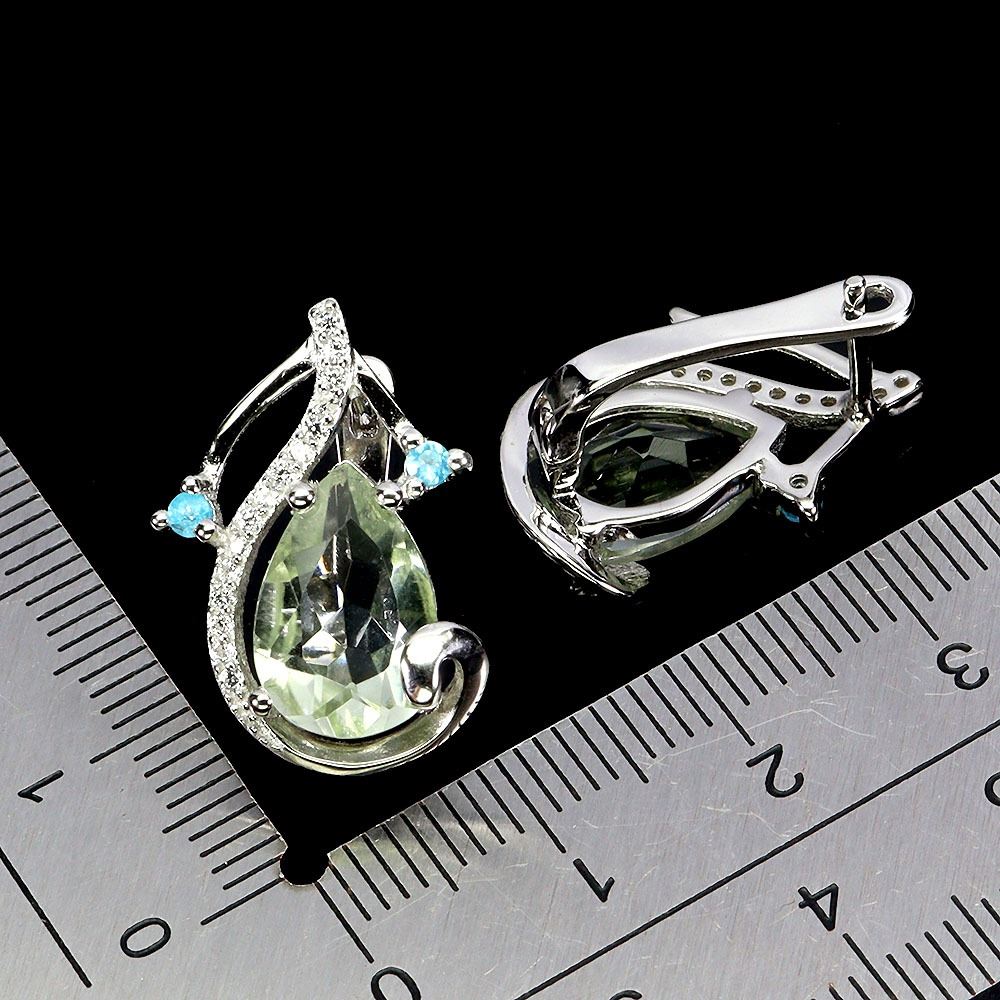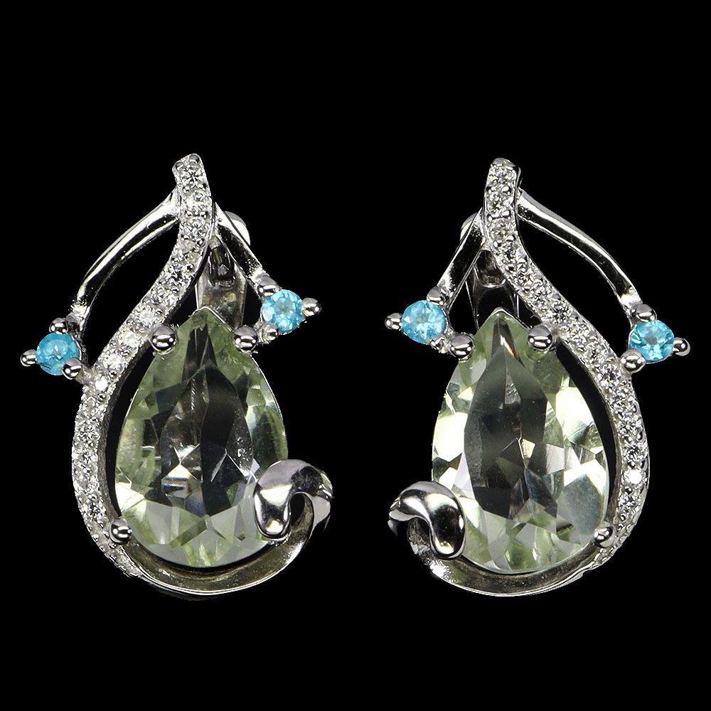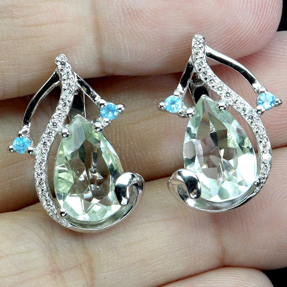 PRASIOLITE (GREEN AMETHYST) AND APATITE EARRINGS IN 14K WHITE PLATED GOLD OVER 925 STERLING SILVER - APPRAISED REPLACEMENT VALUE