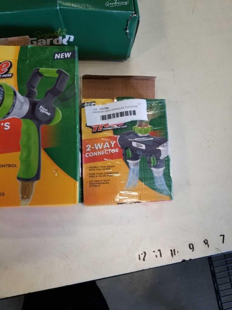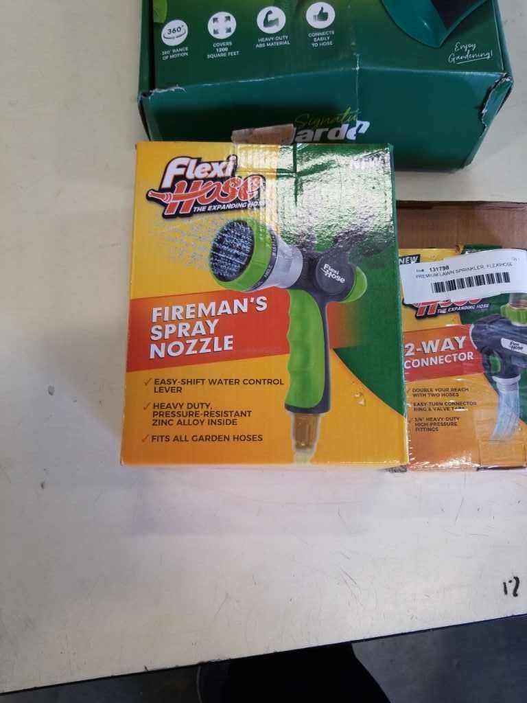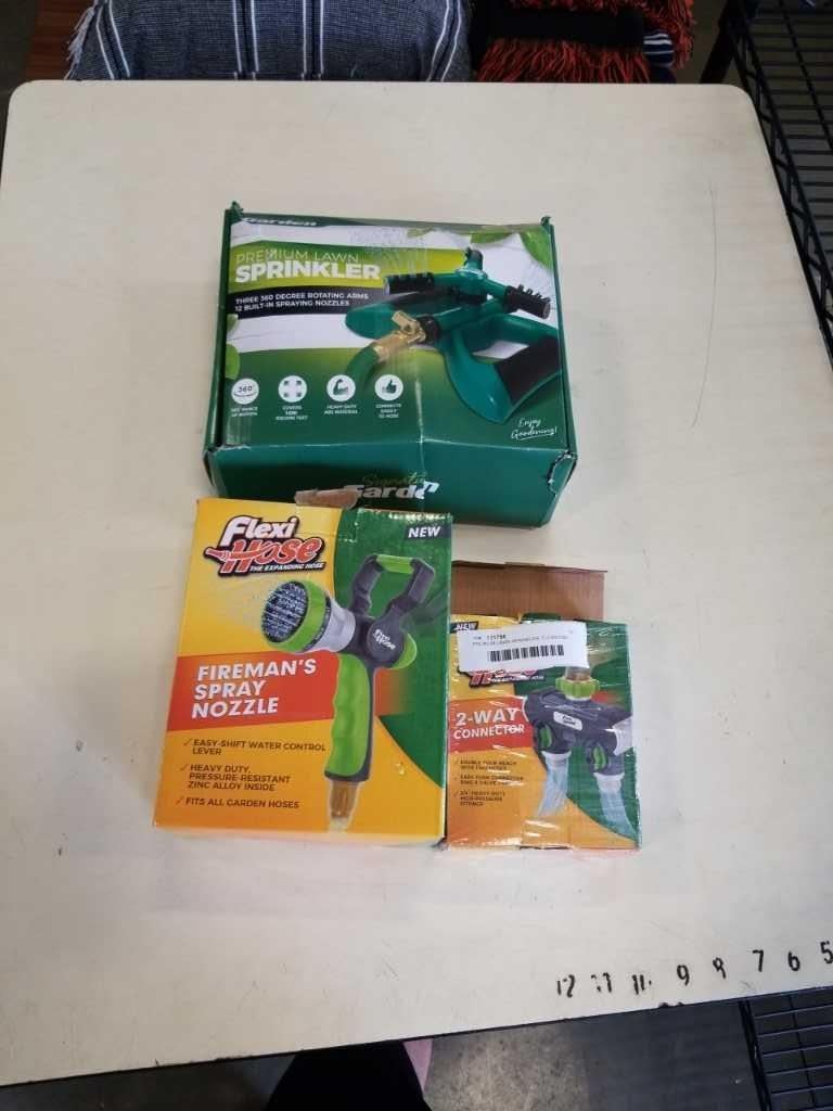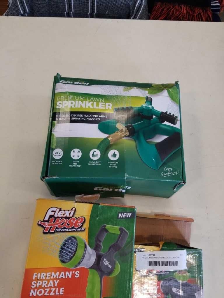 PREMIUM LAWN SPRINKLER, FLEXIHOSE FIREMAN SPRAY NOZZE, AND 2-WAY CONNECTOR