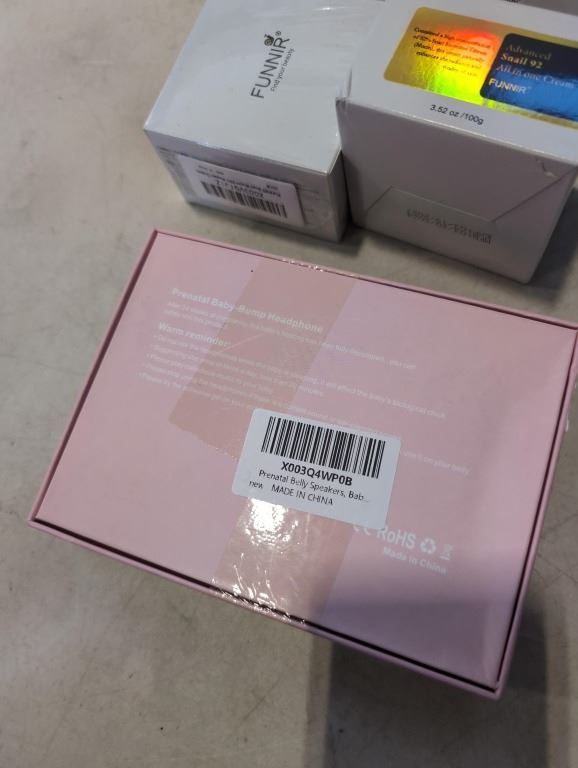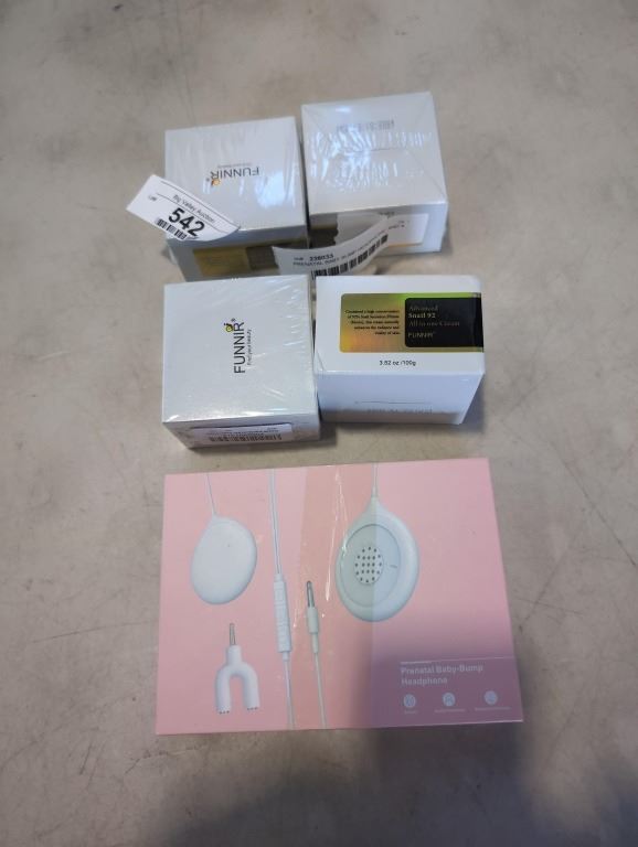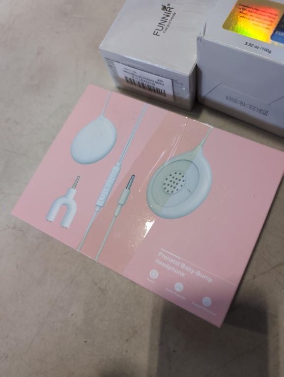 PRENATAL BABY BUMP HEADPHONE, AND 4 NEW FUNNIR SNAIL 92 ALL IN ONE REPAIR CREAM