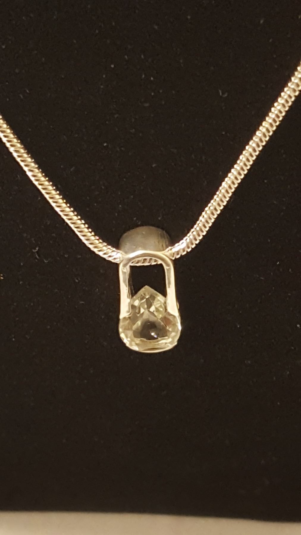 PRETTY 3.25 CT GREEN AMETHYST PENDANT. MOUNTED IN SOLID .925 STERLING SILVER. INCLUDES 20 " LONG 2 MM CHAIN CTTW