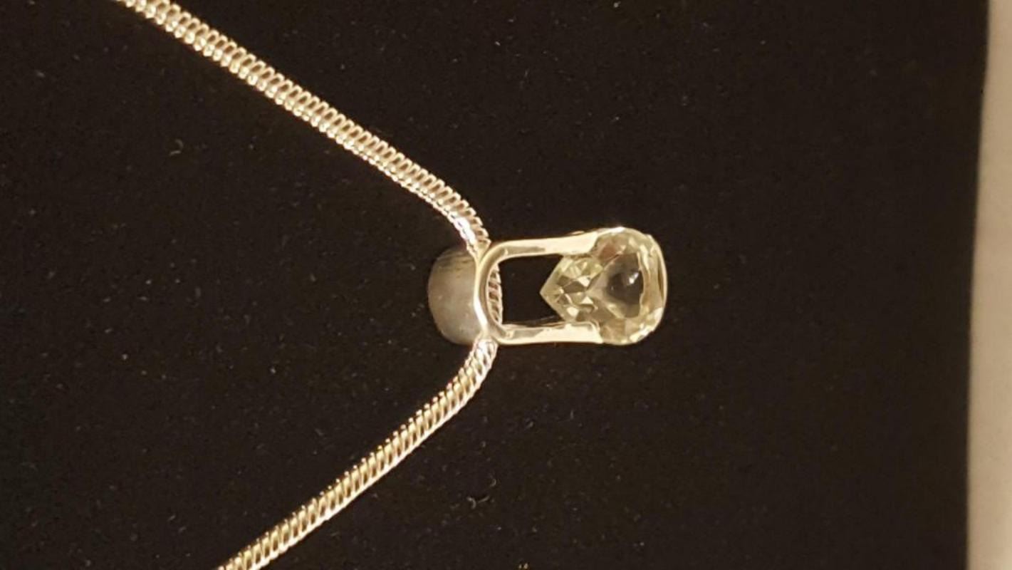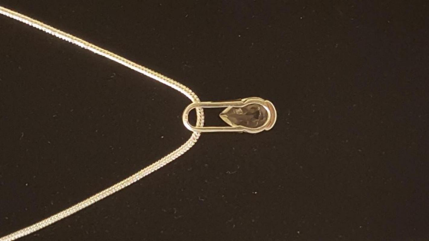 PRETTY 3.25 CT GREEN AMETHYST PENDANT. MOUNTED IN SOLID .925 STERLING SILVER. INCLUDES 20 " LONG 2 MM CHAIN CTTW