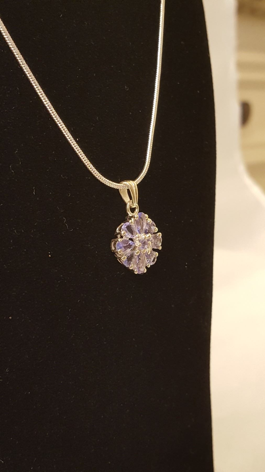 PRETTY SWEET NATURAL TANZANITE PENDANT. THESE LOVEY STONES ARE MOUNTED IN SOLID .925 STERLING SILVER. INCUDES 18" CHAIN 27 CTTW