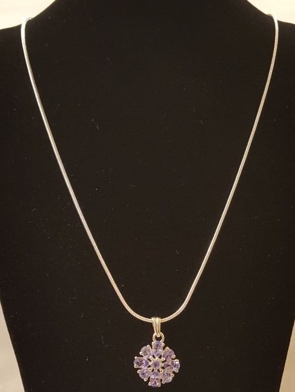 PRETTY SWEET NATURAL TANZANITE PENDANT. THESE LOVEY STONES ARE MOUNTED IN SOLID .925 STERLING SILVER. INCUDES 18" CHAIN 27 CTTW