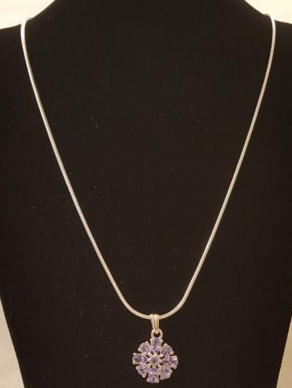PRETTY SWEET NATURAL TANZANITE PENDANT. THESE LOVEY STONES ARE MOUNTED IN SOLID .925 STERLING SILVER. INCUDES 18" CHAIN 27 CTTW
