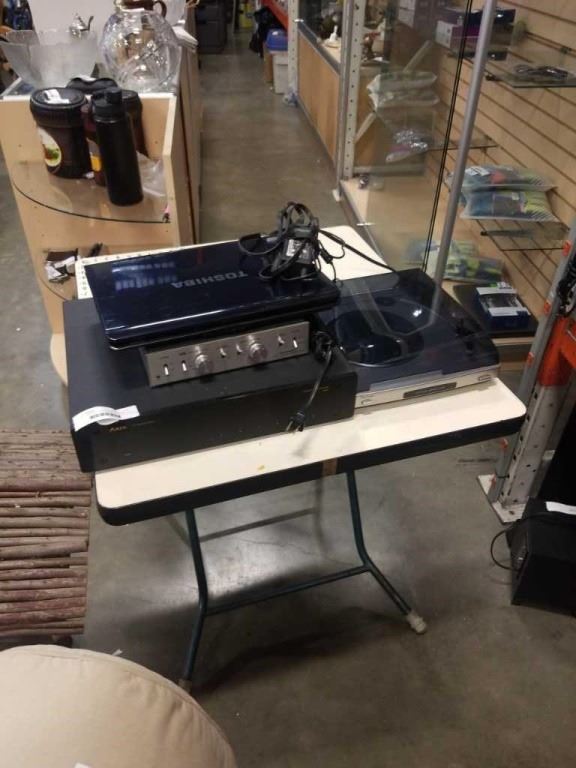 PRO LINEAR RECORD PLAYER, TOSHIBA LAPTOP - NEEDS HARD DRIVE, ARCHER VIDEO SOUND PROCESSOR AND ARIA 4