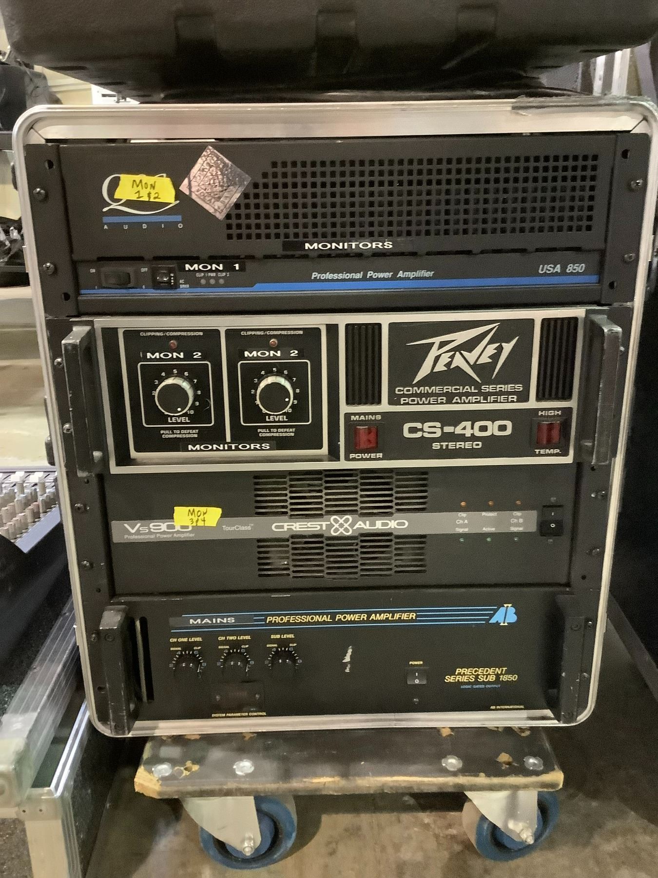 PROFESSIONAL POWER AMPLIFIERS ON ROLLING CART