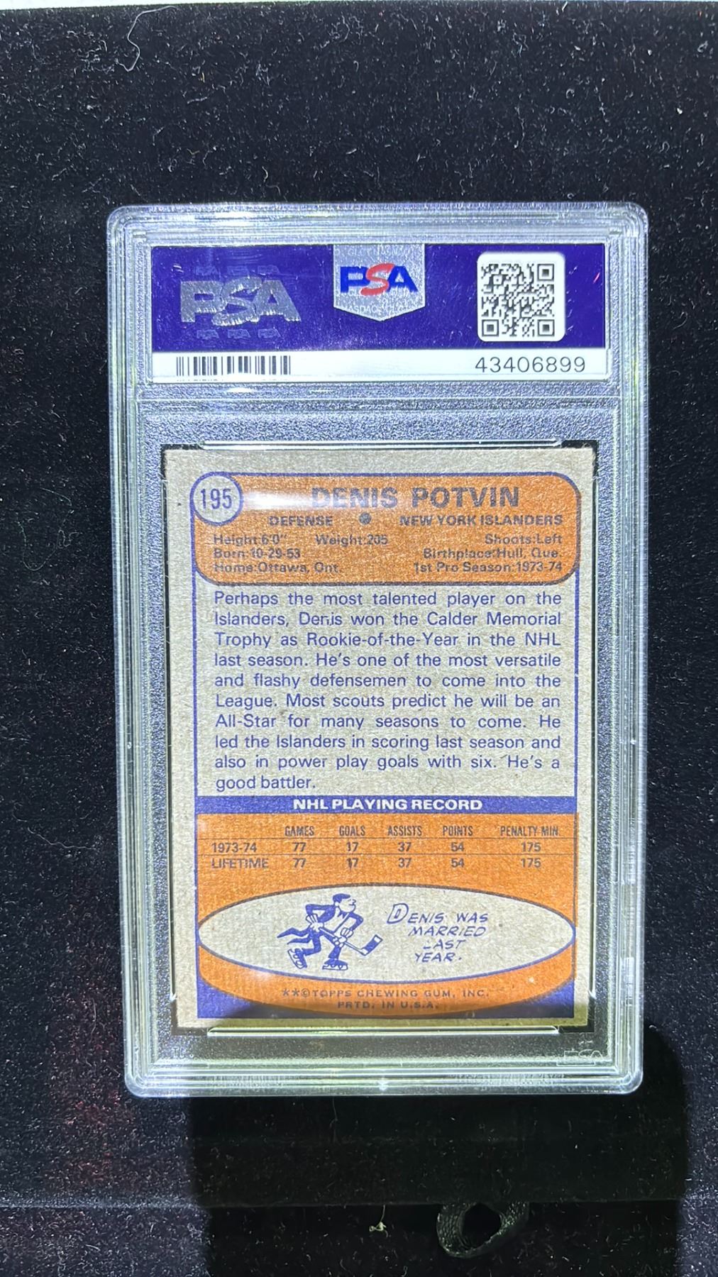 PSA 10 AUTHENTIC AUTOGRAPH 1974 TOPPS #195 DENIS POTVIN CARD