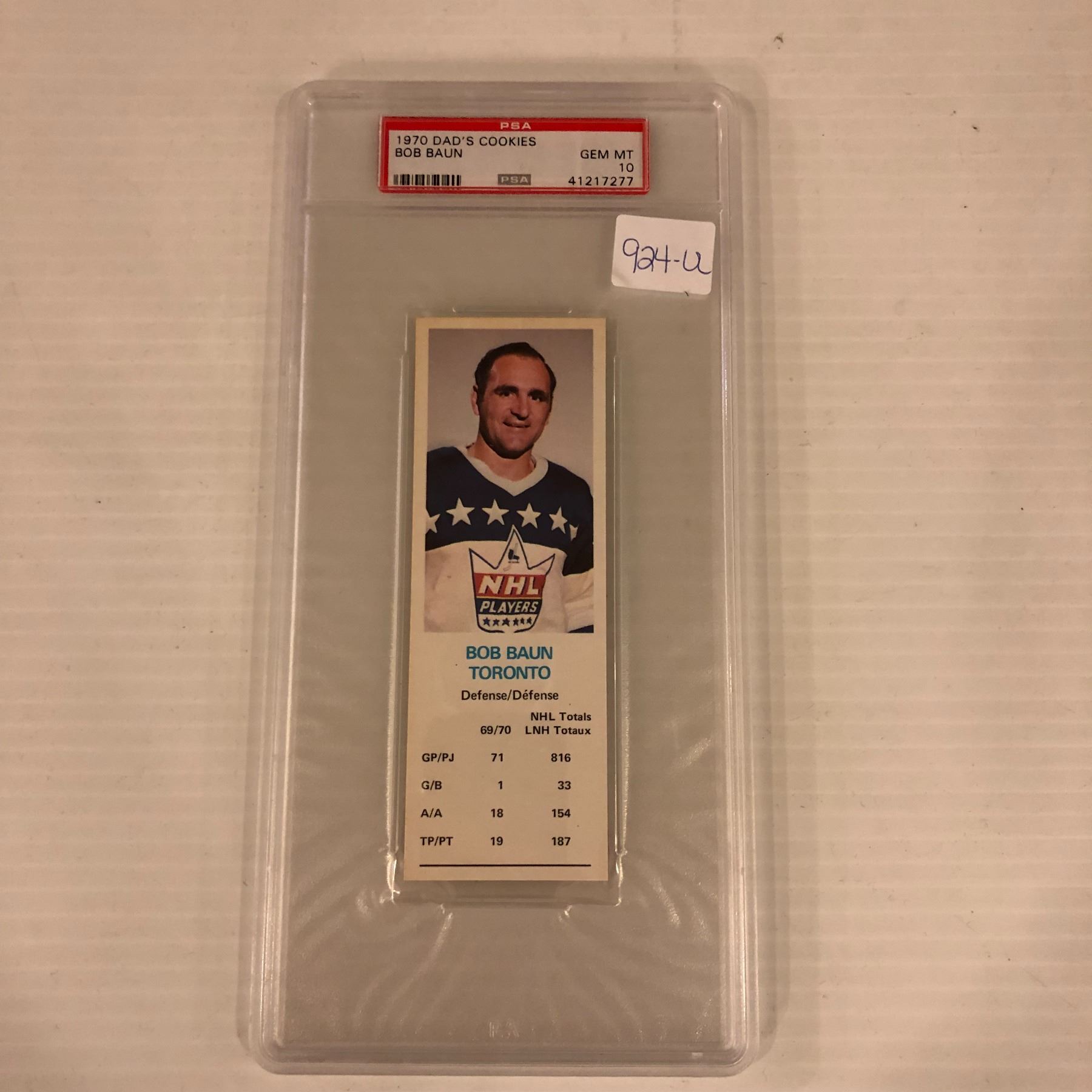 PSA 1970 Dad's Cookies Bob Baun Toronto card - graded GEM MT 10