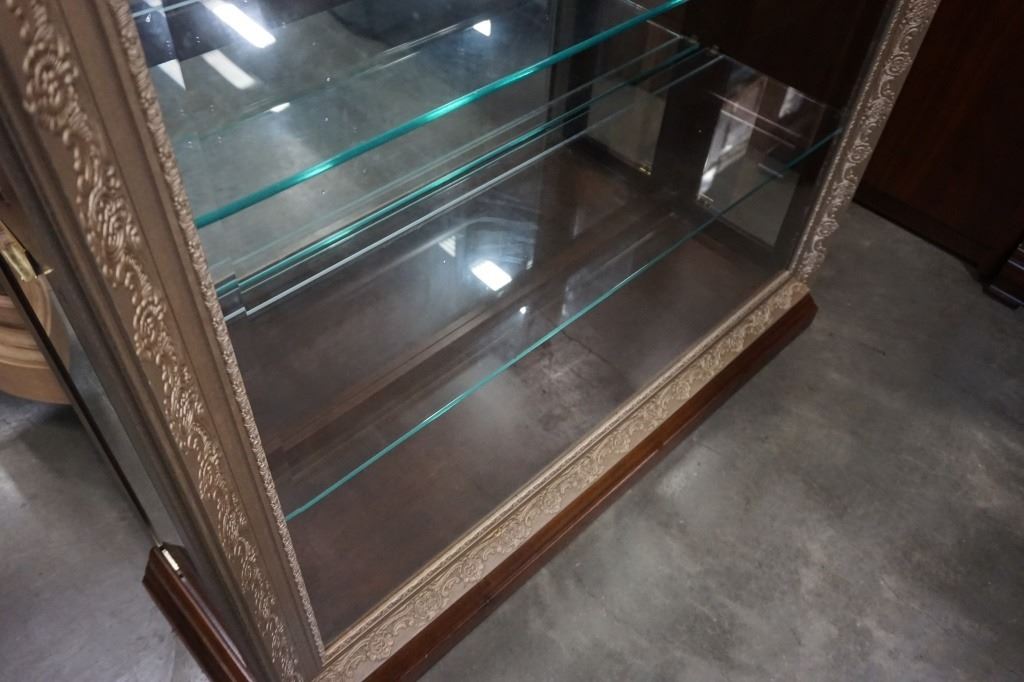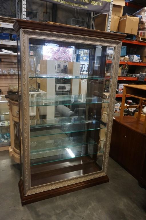 PULASKI FURNITURE CO GLASS ILUMINATED DISPLAY CABINET - 80 INCHES TALL, 46 INCH WIDE, 14 1/2 INCHES DEEP