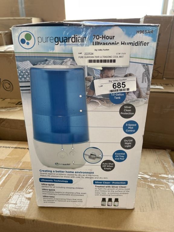 PURE GUARDIAN 70HR ULTRASONIC COOL MIST HUMIDIFIER - TESTED WORKING, RETAIL $69