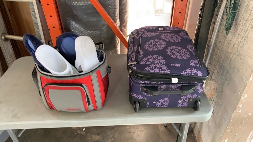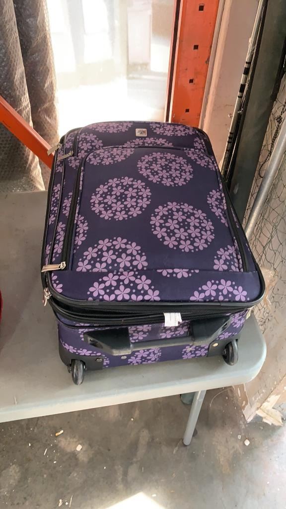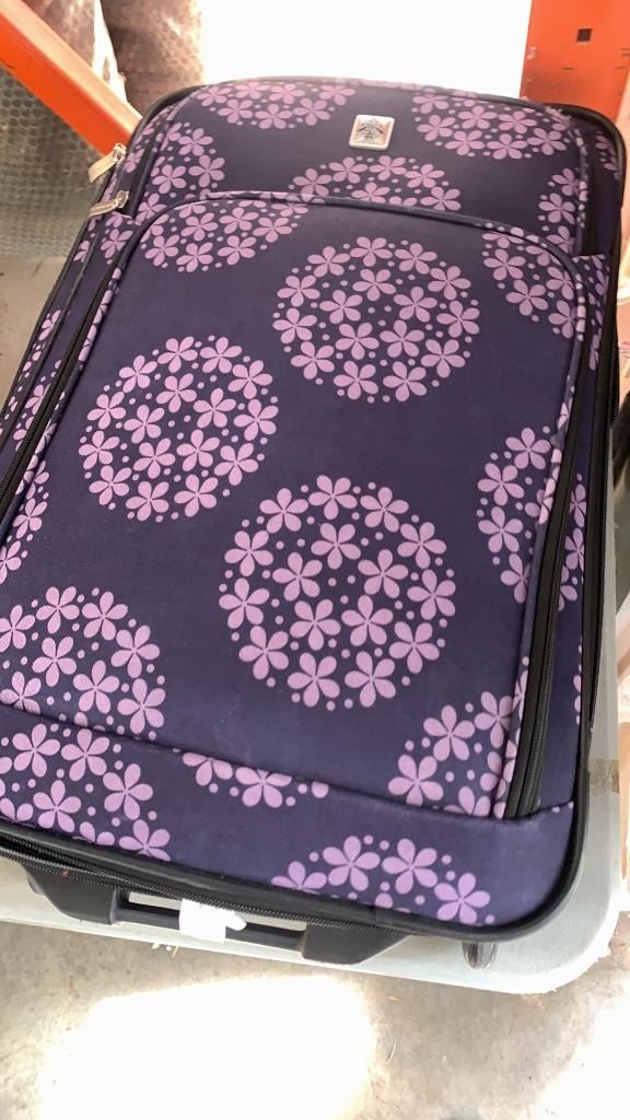 PURPLE LUGGAGE CARRYON WITH SIZE 10 SHOES AND SLIPPERS