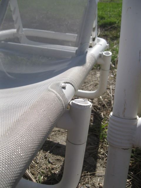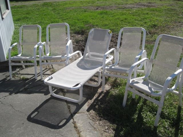 PVC PATIO LOUNGE CHAIR, ONE HANDLE MISSING