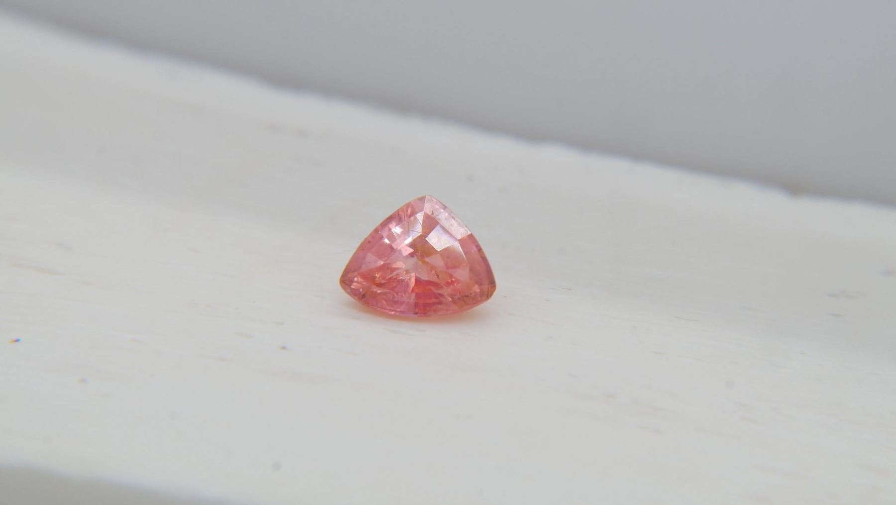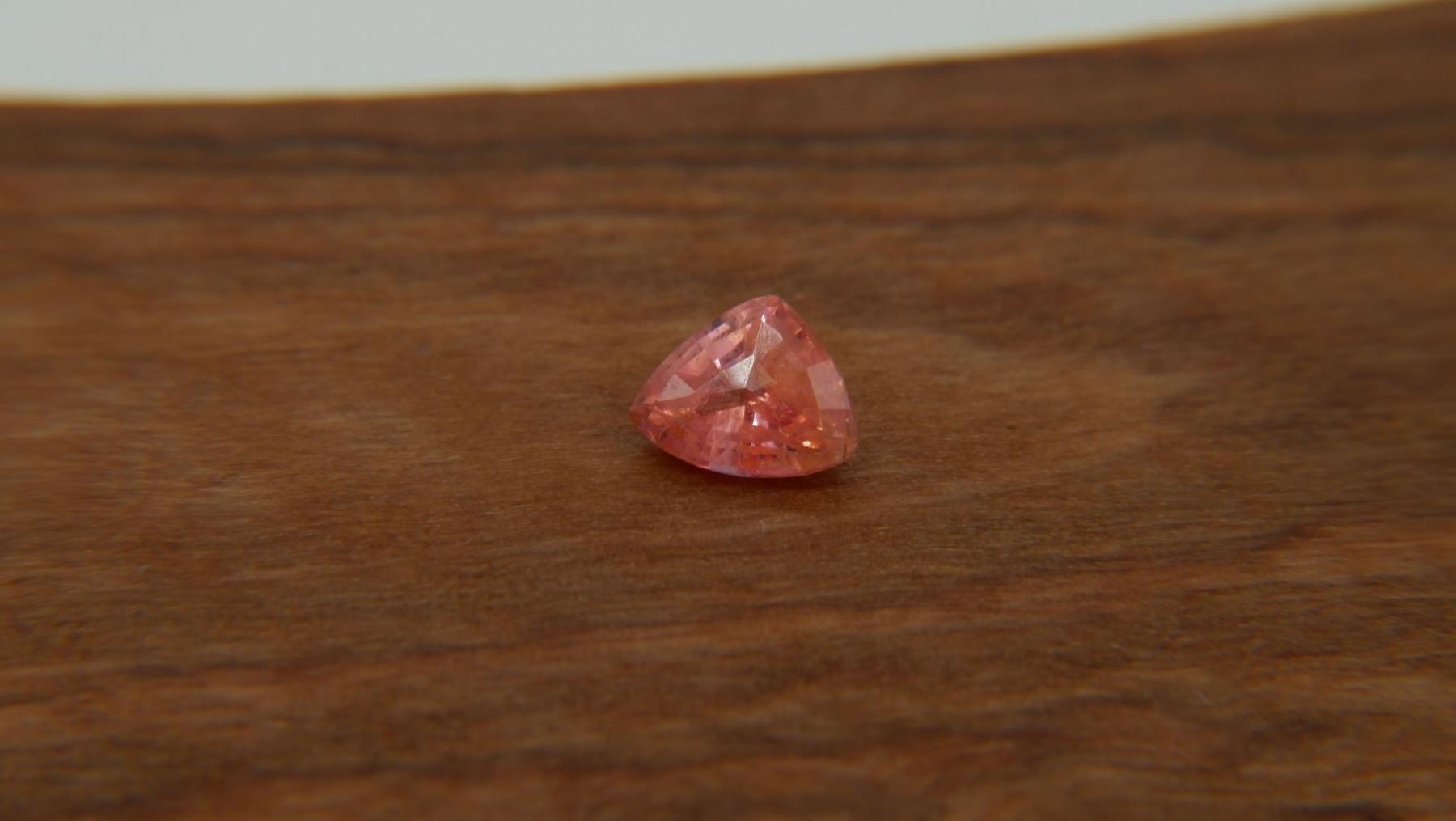 loose faceted precious sapphire, brand new without tags from Sri Lanka. GEMSTONE TYPE: Genuine Sri Lanka, Ceylon sapphireRECOMMENDED JEWELRY SETTINGS: Solitaire Ring, Women Rings, Sapphire solitaire, BraceletsCERTIFICATE: CSL/GIA Full Lab Report includedORIGIN: Sri LankaCARAT SIZE: 0.8DIMENSIONS: Length 6.50 x Width 5.20 x Depth 3.50 mmSHAPE/CUT: premium handcrafted triangular cut with lustrous finish, triangular cutTREATMENTS: None (No Enhancement)COLOR/COLOUR: Padparadscha Vivid SunsetGIA COLOR CODE: oPCLARITY: VS (eyeclean)SATURATION: 4=mstTONE: 4=mlFINISH & POLISH: excellent