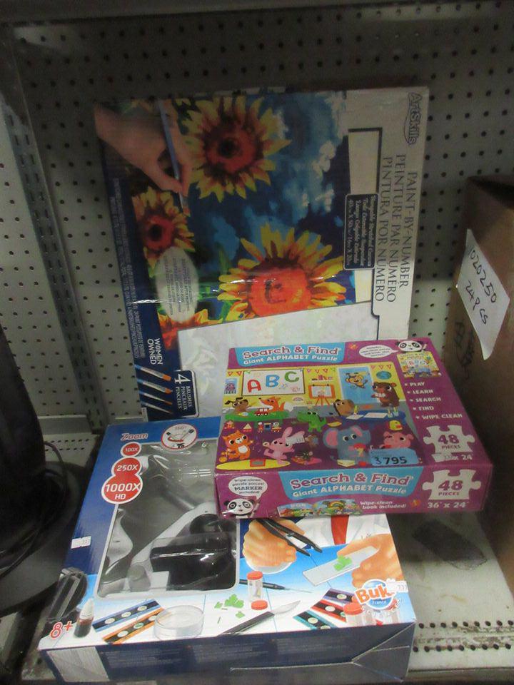 Includes a giant alphabet puzzle & toy microscope. All open box.