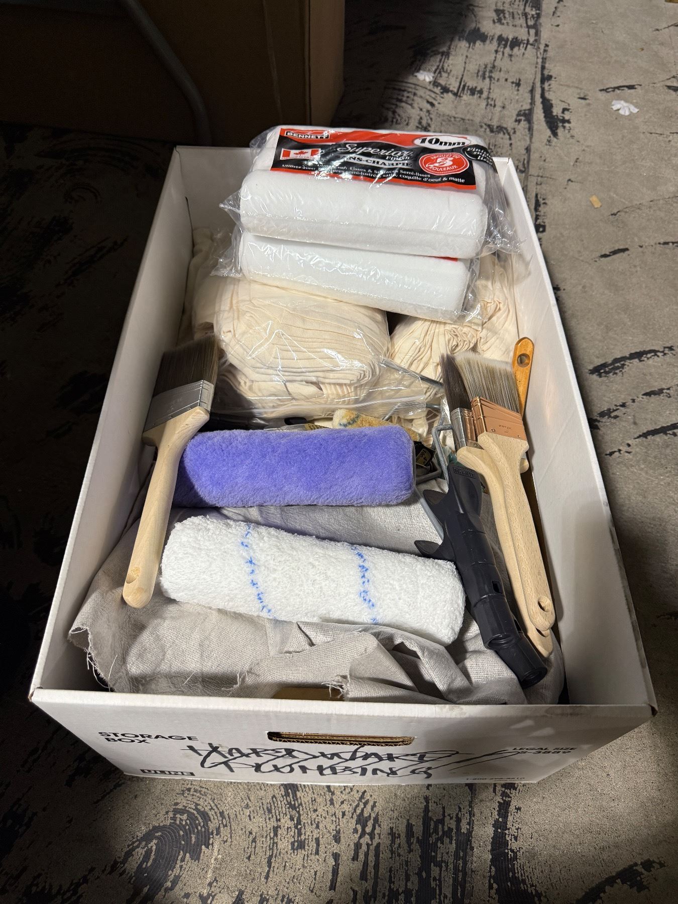 Painting & Plumbing Supply Box - Rollers, Paintbrush, and Tools