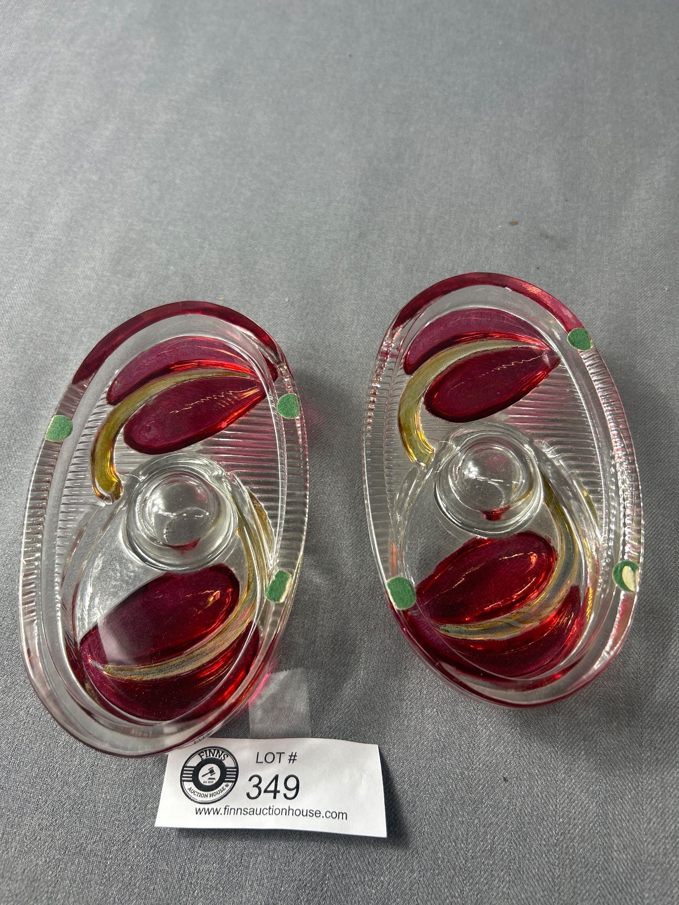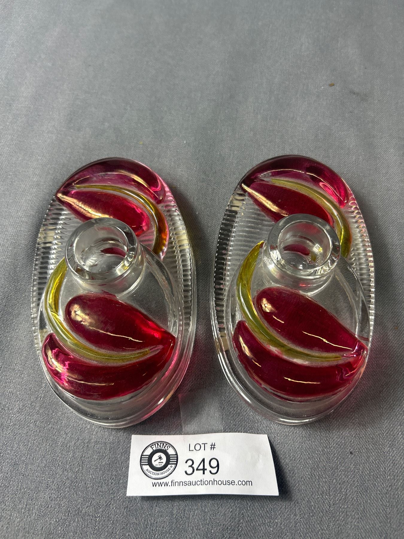 Pair Of 1940's - 50's Flashed Ruby Glass CandleSticks