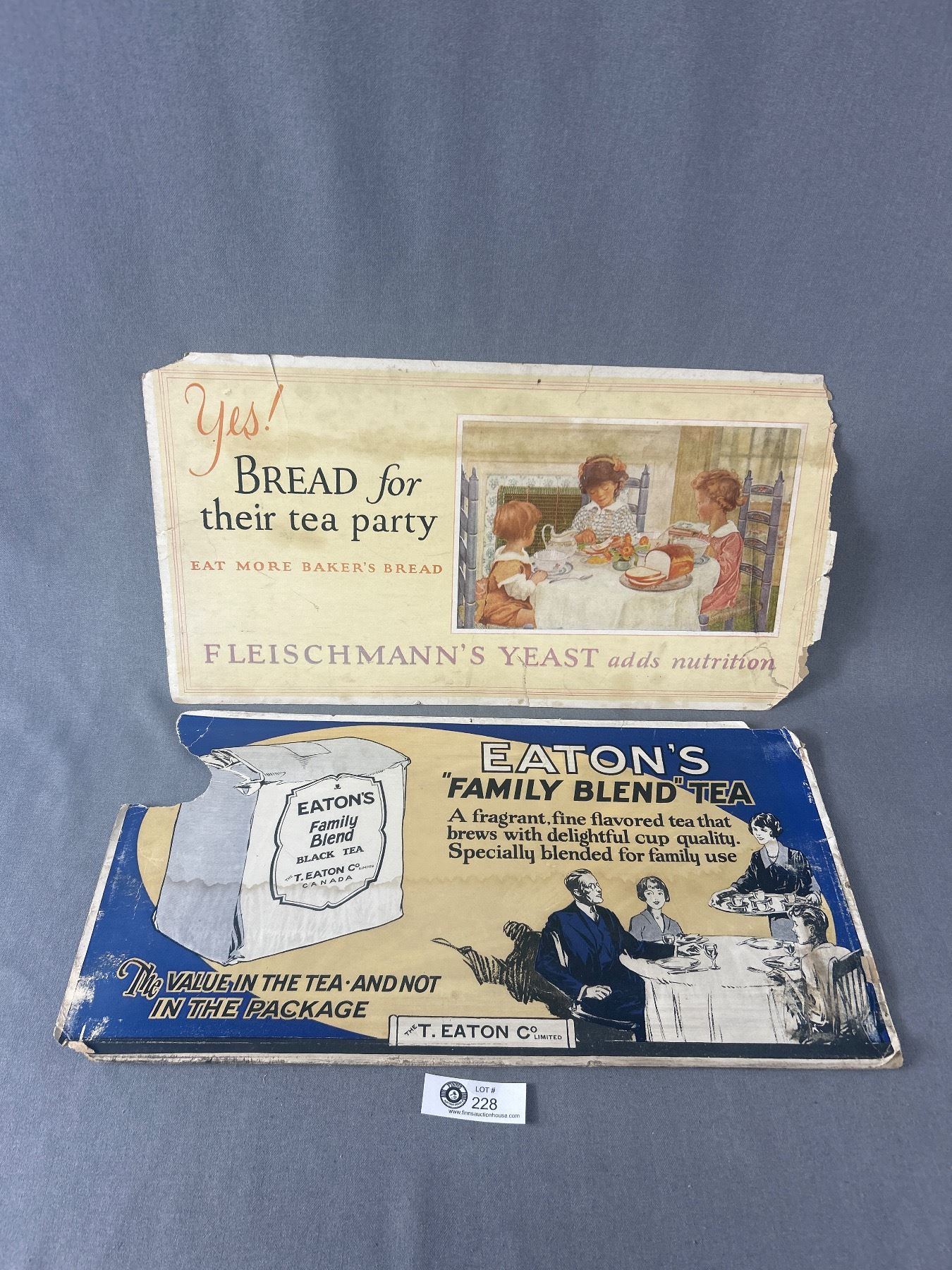 Pair Of 1940's Trolley Car Advertising Cards - Eaton's Tea & Fletschmann's Yeast
