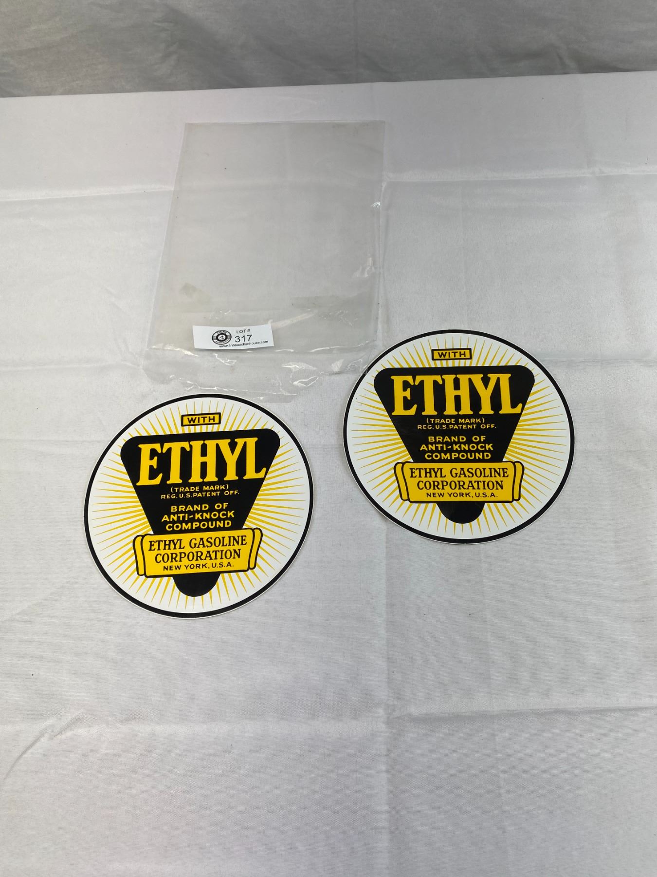Pair Of Ethyl Gasoline Corporation Gas Pump Stickers