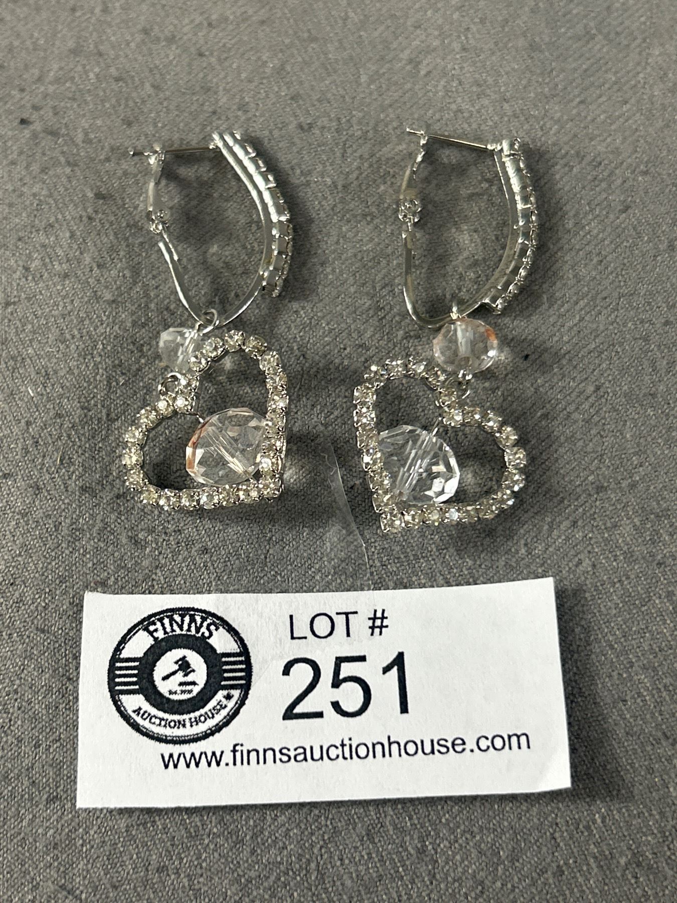Pair Of Lovely Rhinestones & Crystal Beads Heart Shaped Earrings