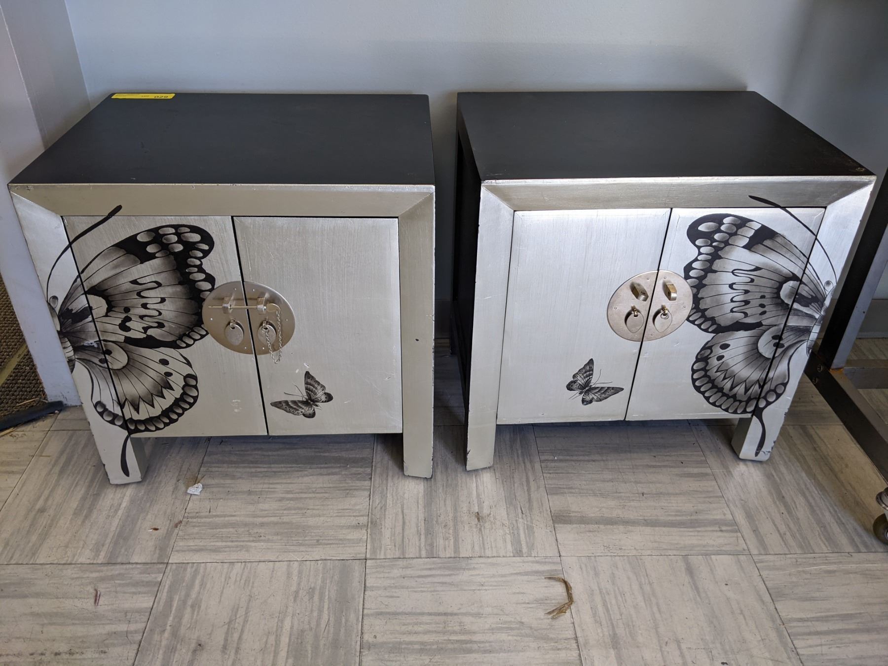 Pair black and silver butterfly side cabinets from the popular sci-fi tv series