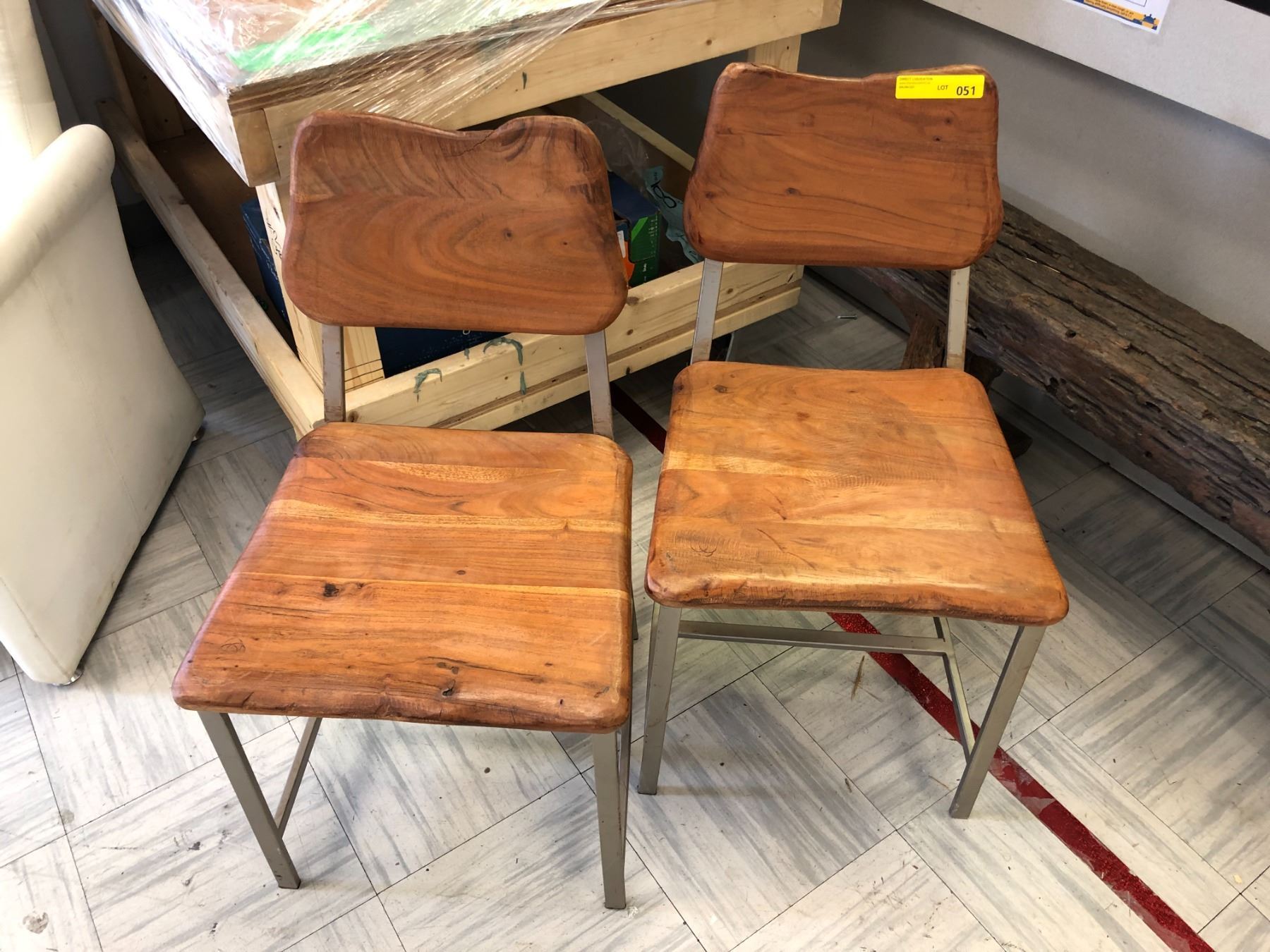 Pair metal & solid wood side chairs from the popular sci-fi tv series
