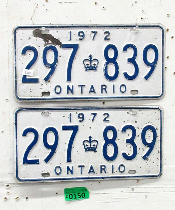 Pair of 1972 Ontario License Plates