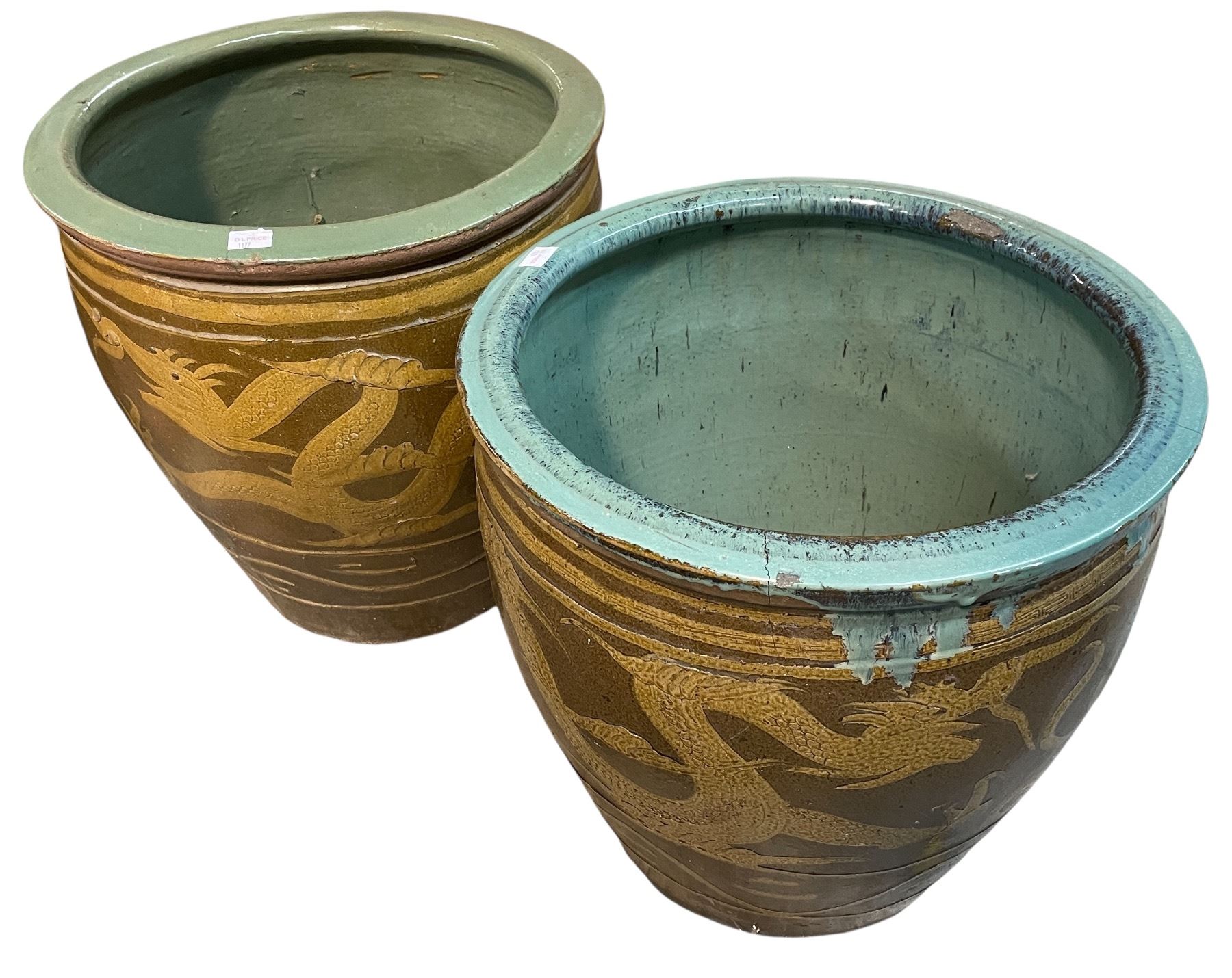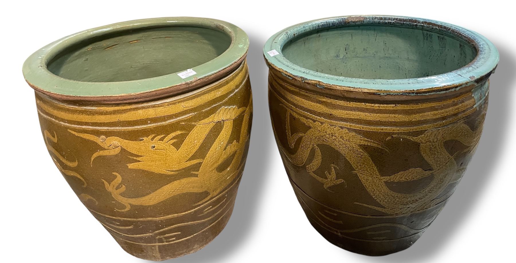 Pair of 20" Vintage Chinese Pottery Egg Pot Dragon