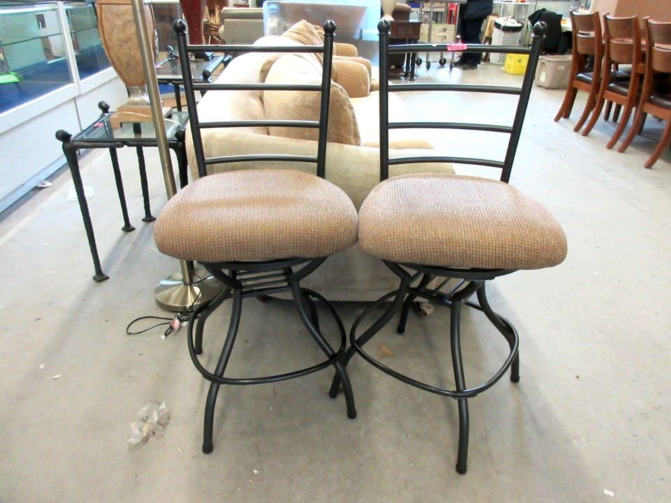 Fabric seats and metal frames.
