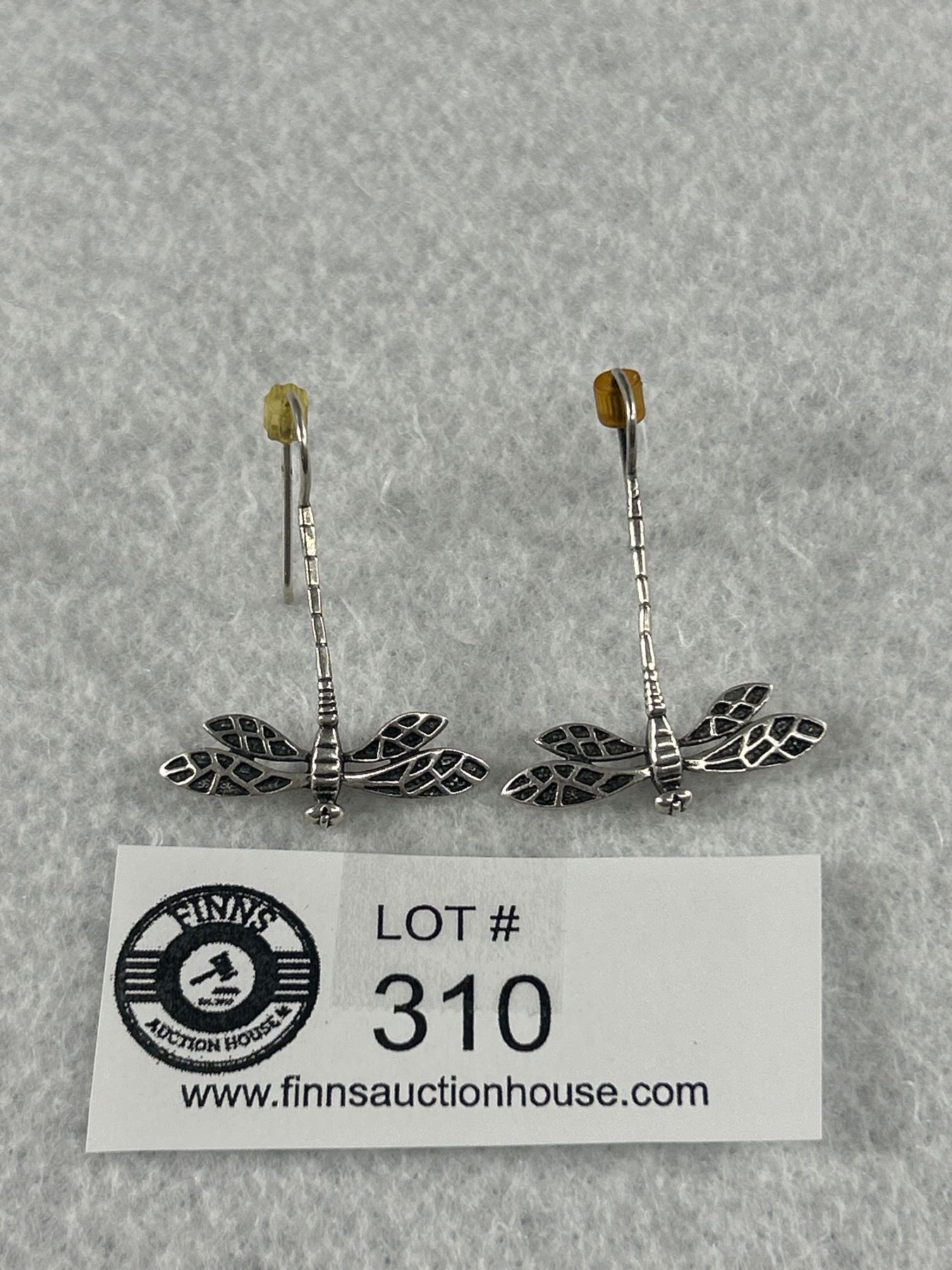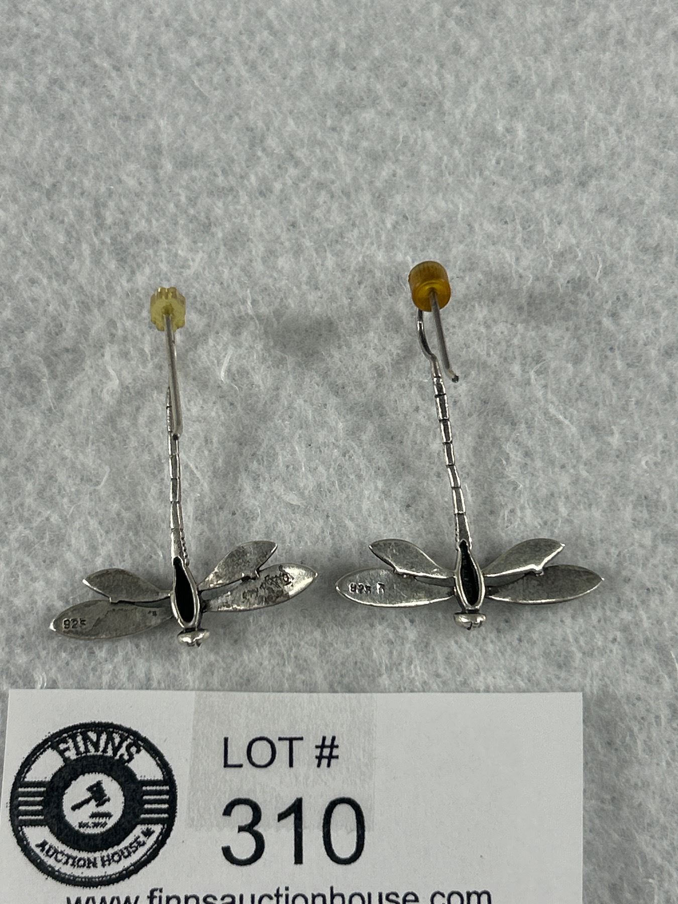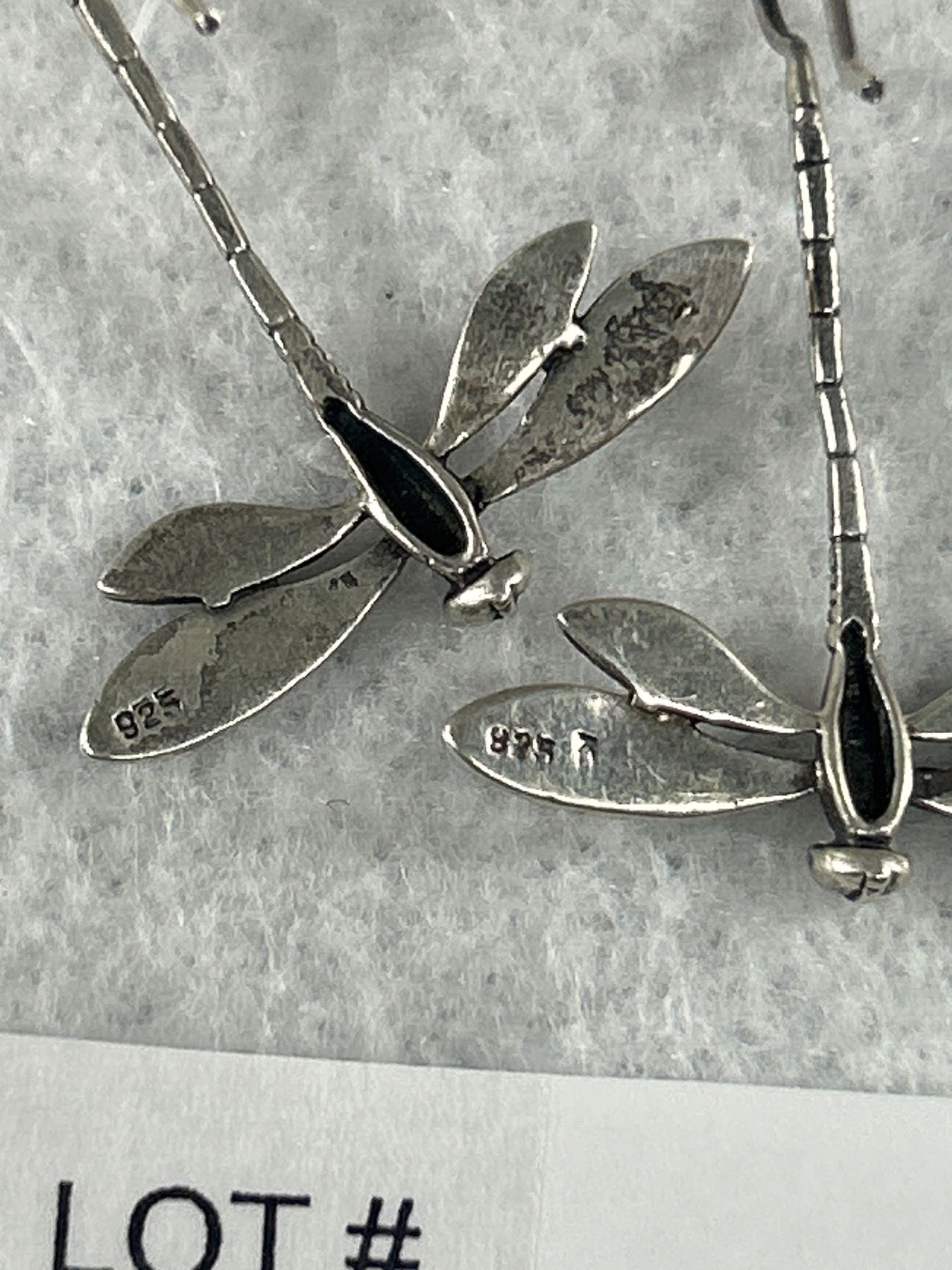 Pair of 925 Sterling Silver Dragonfly Drop Earrings