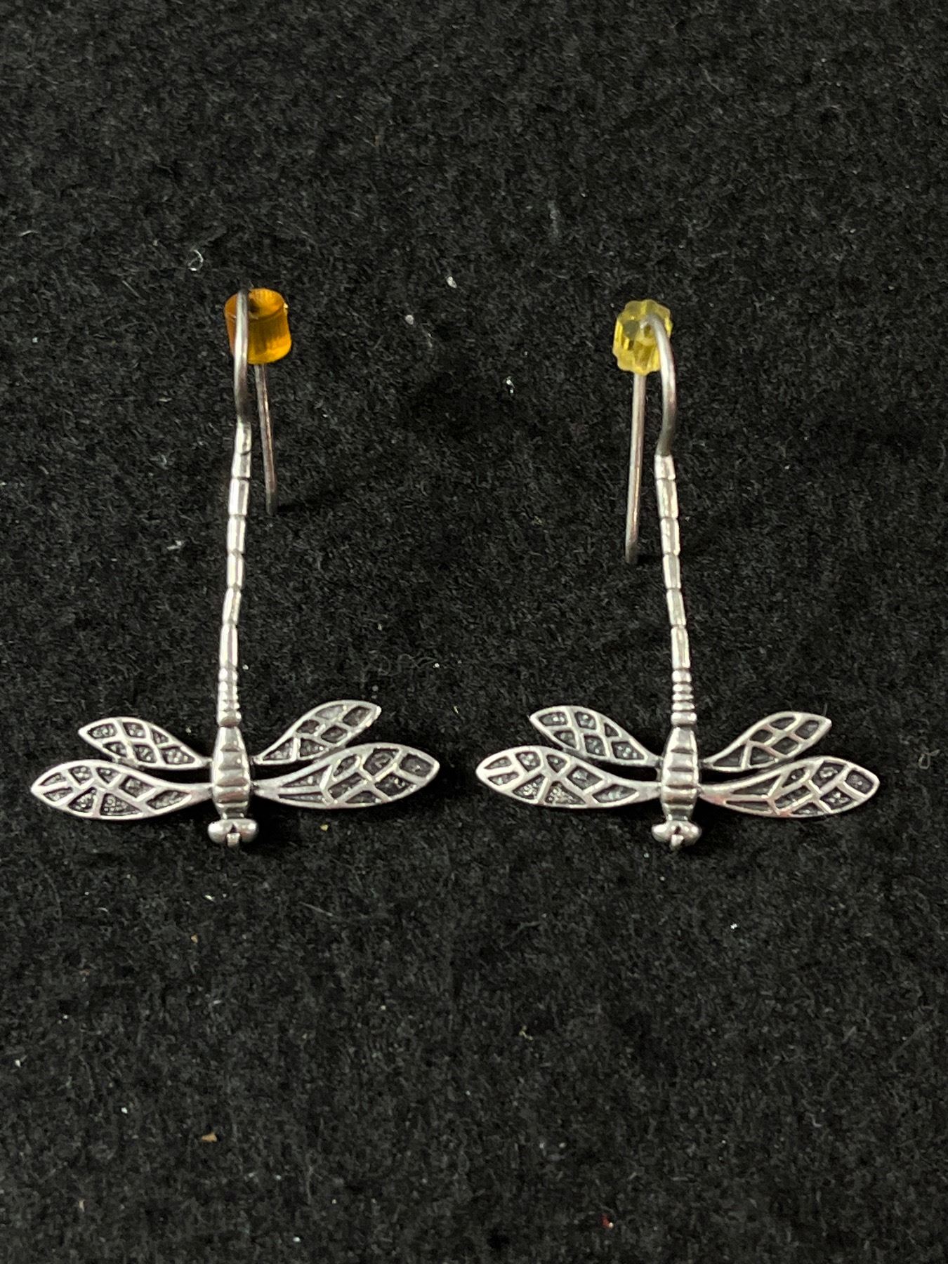 Pair of 925 Sterling Silver Dragonfly Drop Earrings