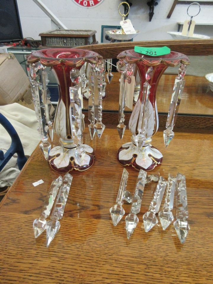 10" tall. Missing one crystal drop.