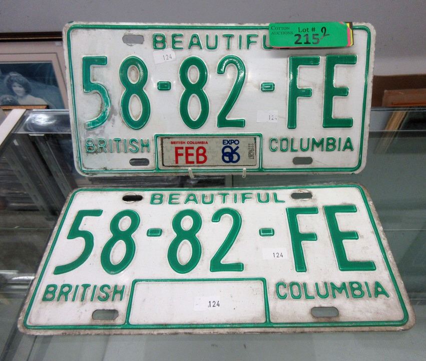 Pair of BC License Plate with 1 Expo 86 Tag