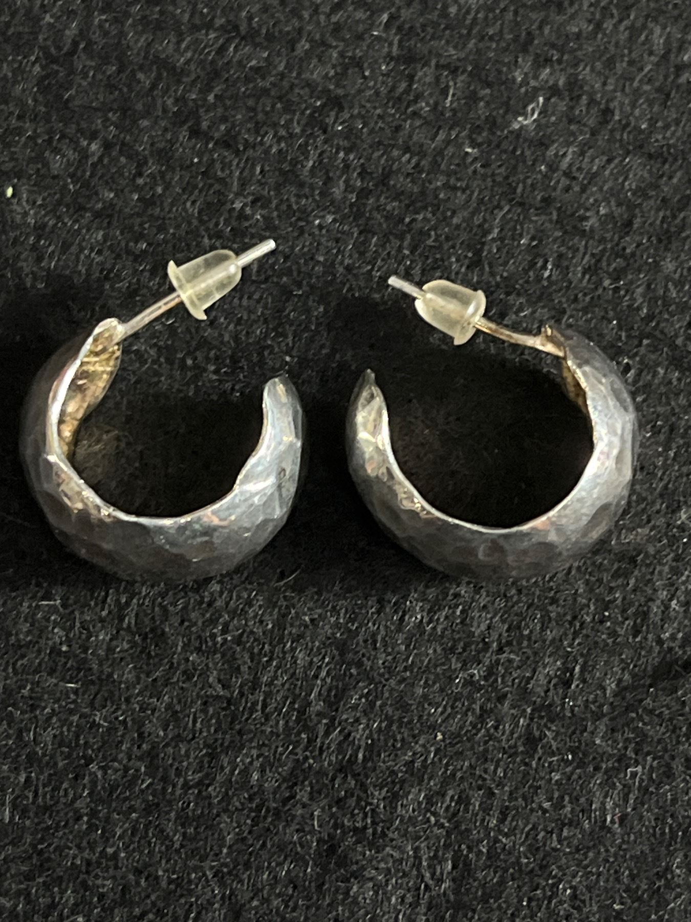 Pair of Hand Hammered Sterling Silver Hoop Earrings