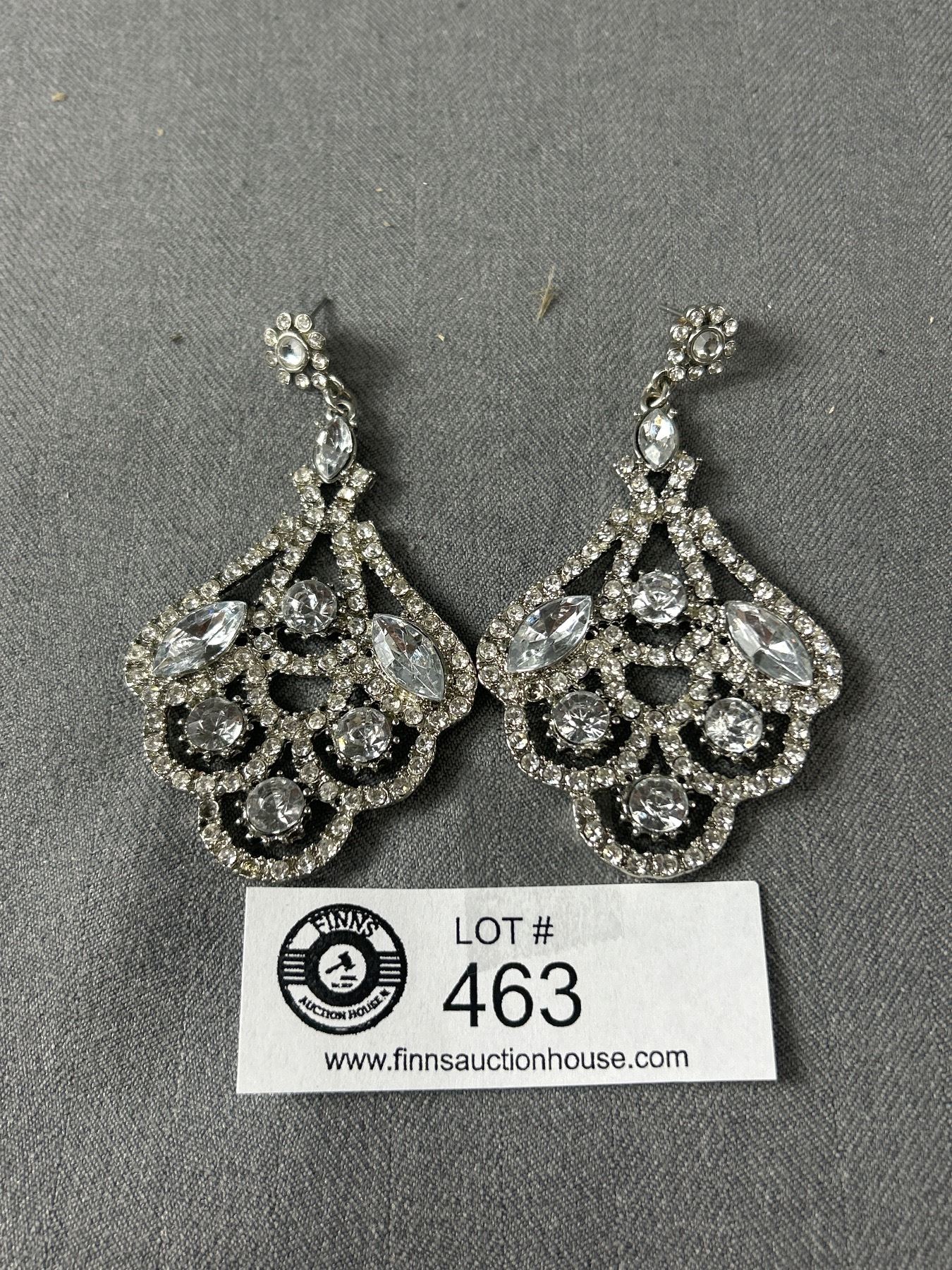 Pair of Large White Rhinestones Dangle Earrings 3" L x 1.5/8" W