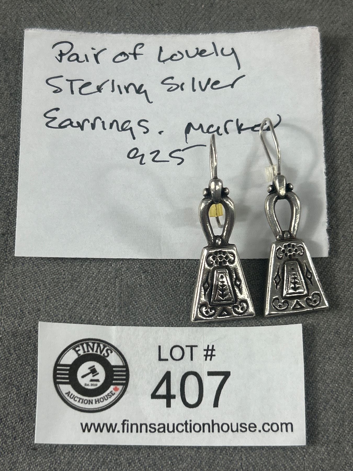 Pair of Lovely Sterling Silver Earrings, Marked 925