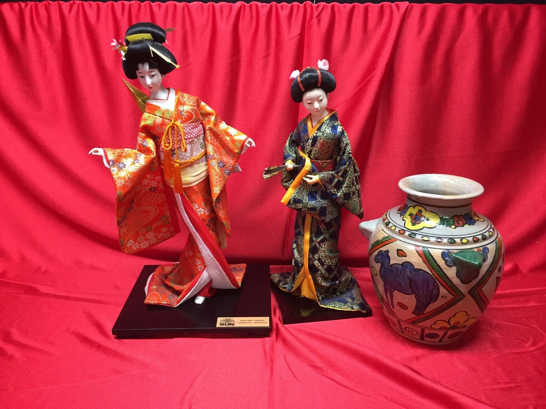 Pair of Oriental Figures, Presentation Pieces With Asian Vase with repair
