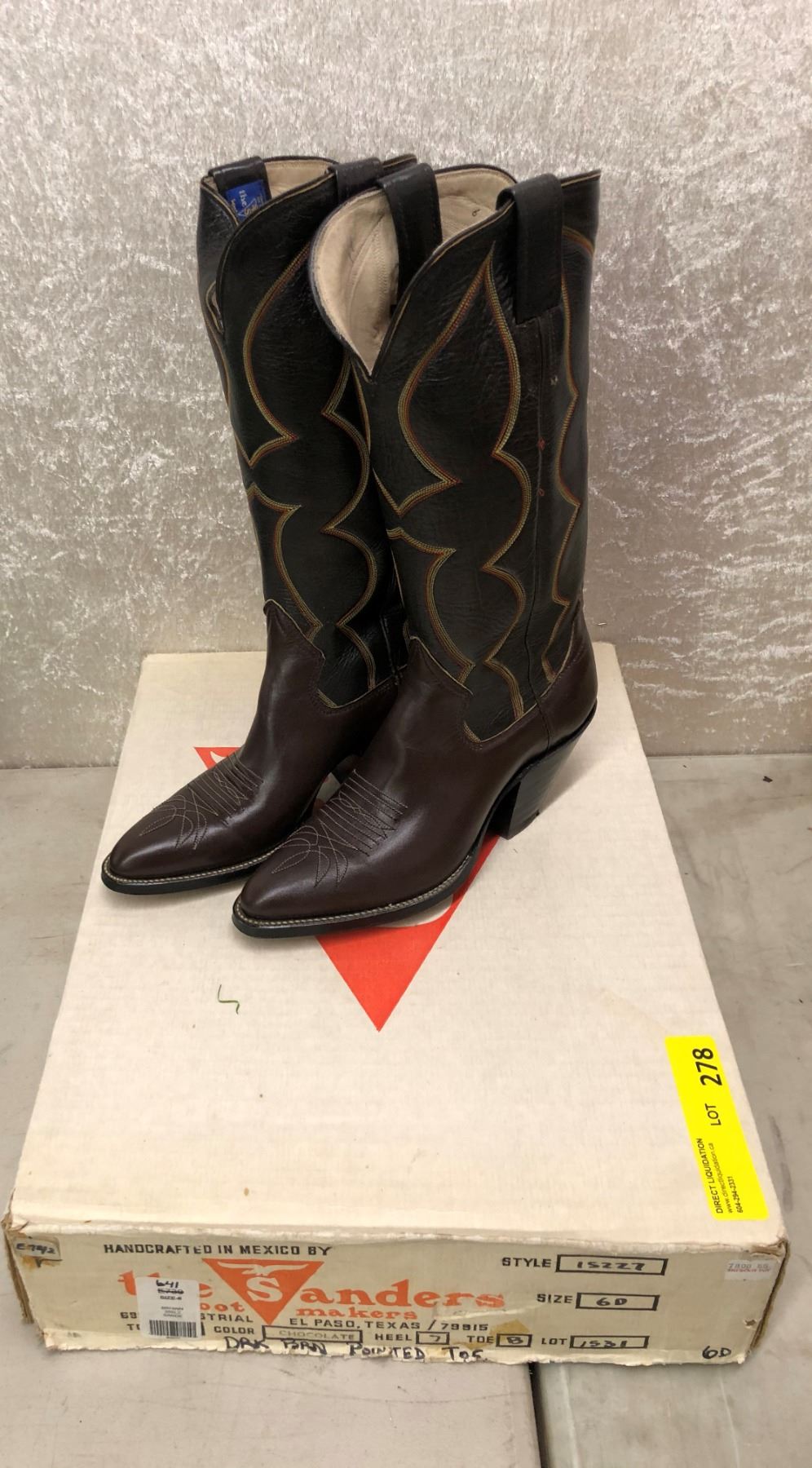 Pair of Sanders chocolate dark brown pointed toes cowboy boots size 6 (NOS)