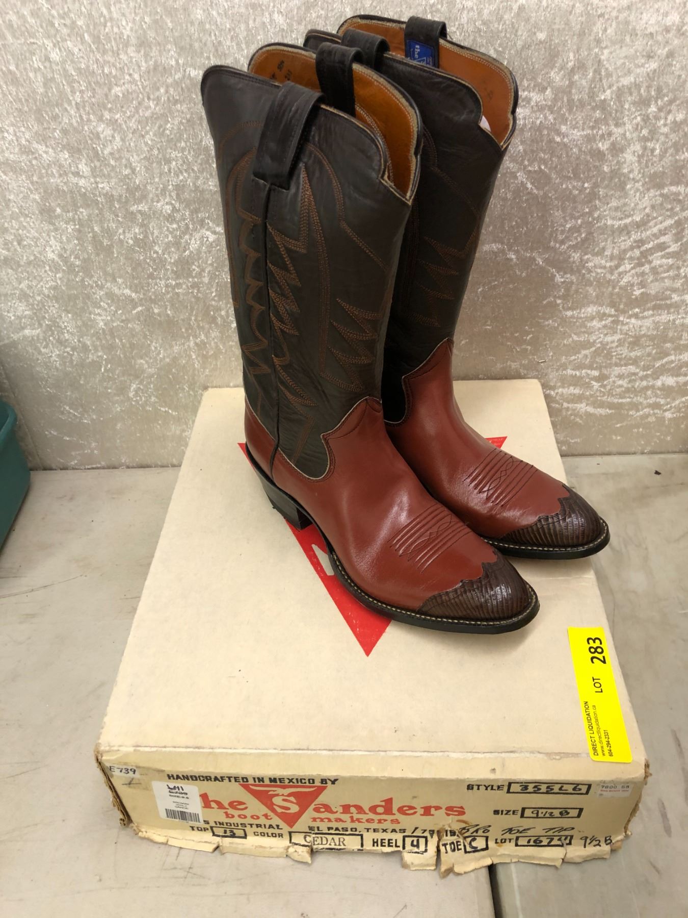 Pair of Sanders seeder/brown toe tip cowboy boots size 9 1/2 (NOS)