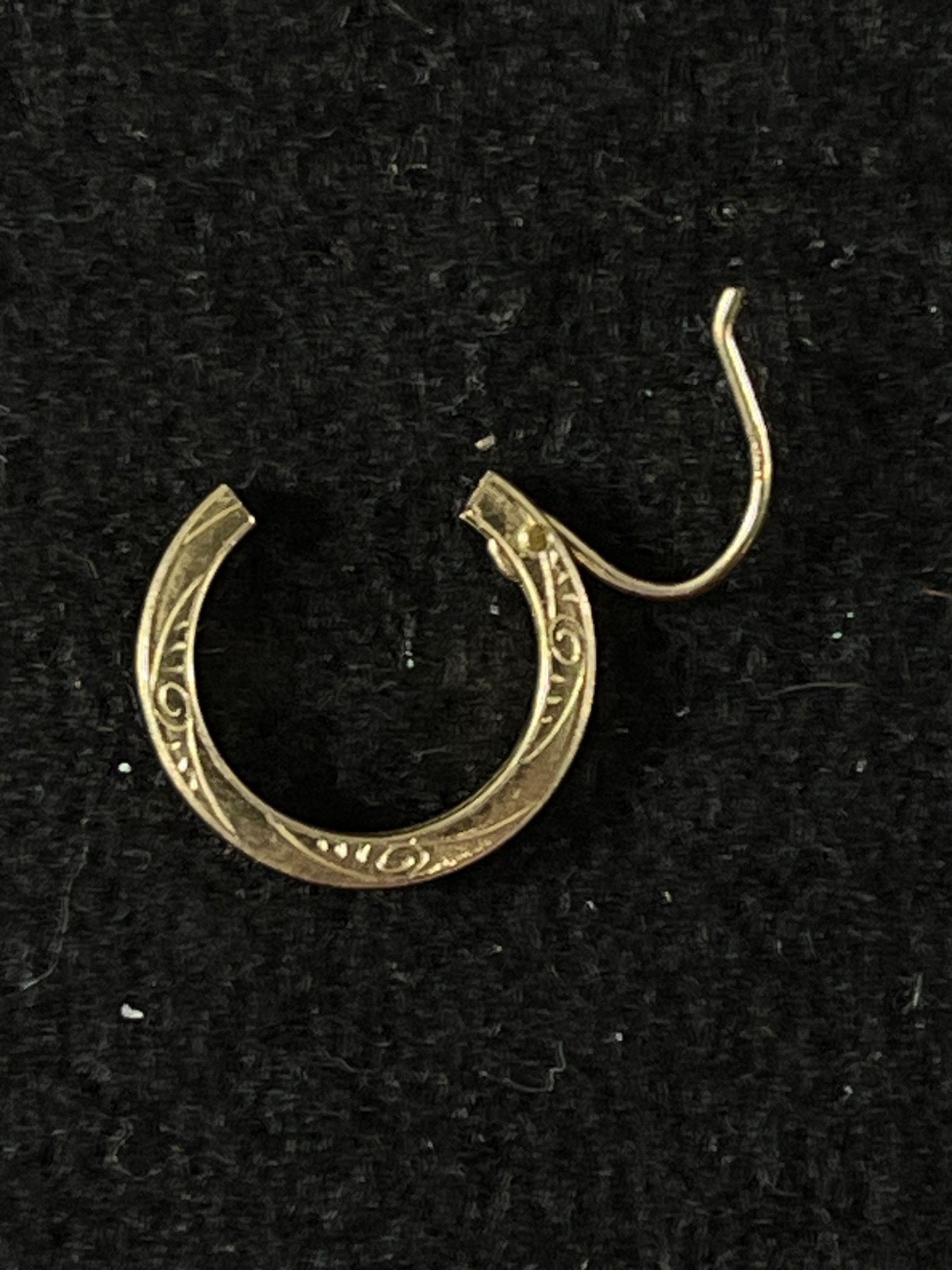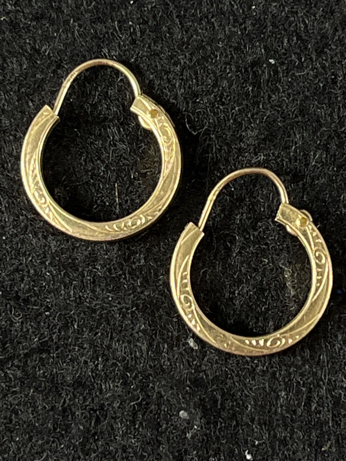 Pair of Small Engraved 10k Gold Hoop Earrings 1gr