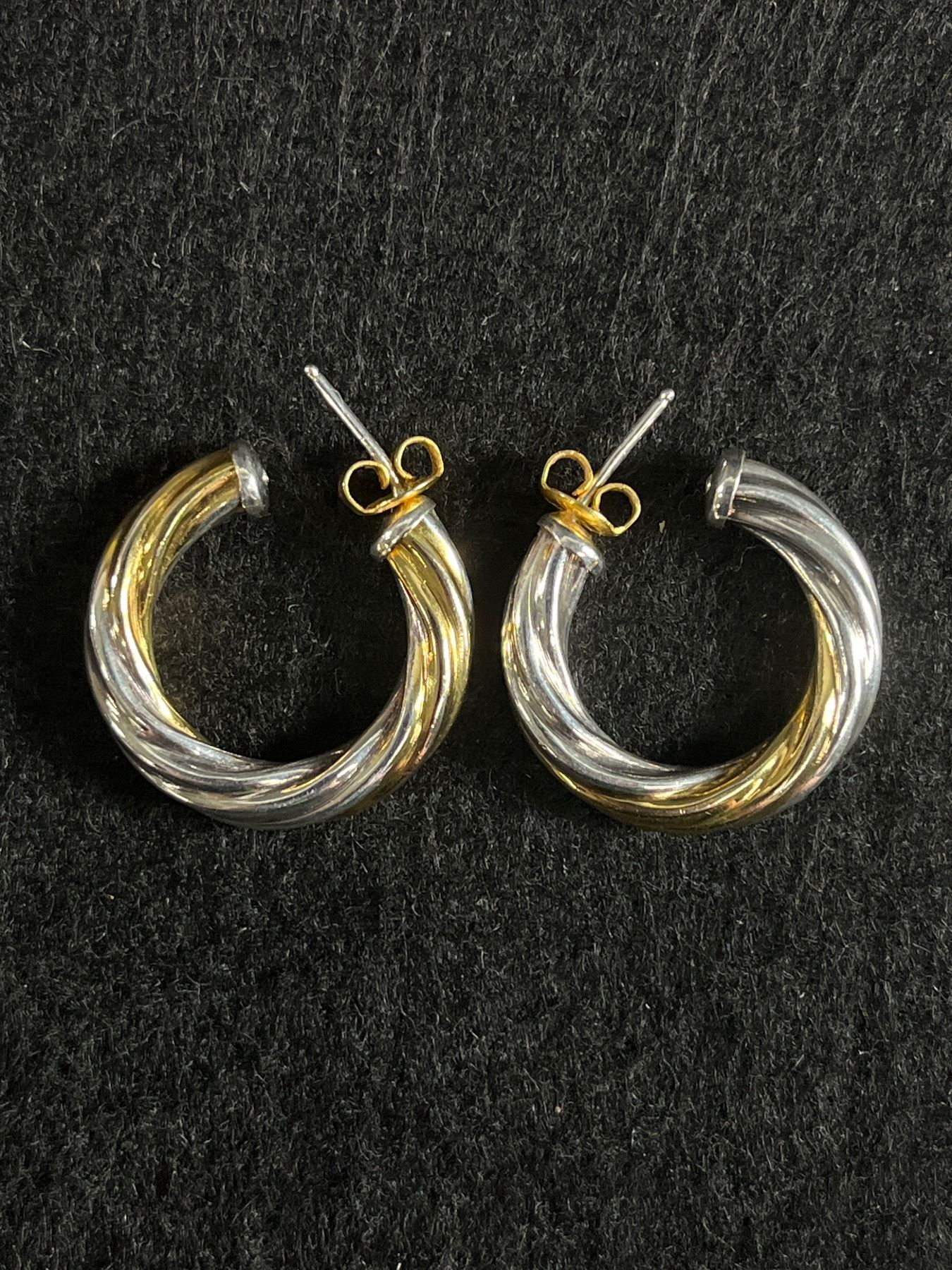 Pair of Solid Sterling SilverTwisted Design Hoop Earrings Marked 925