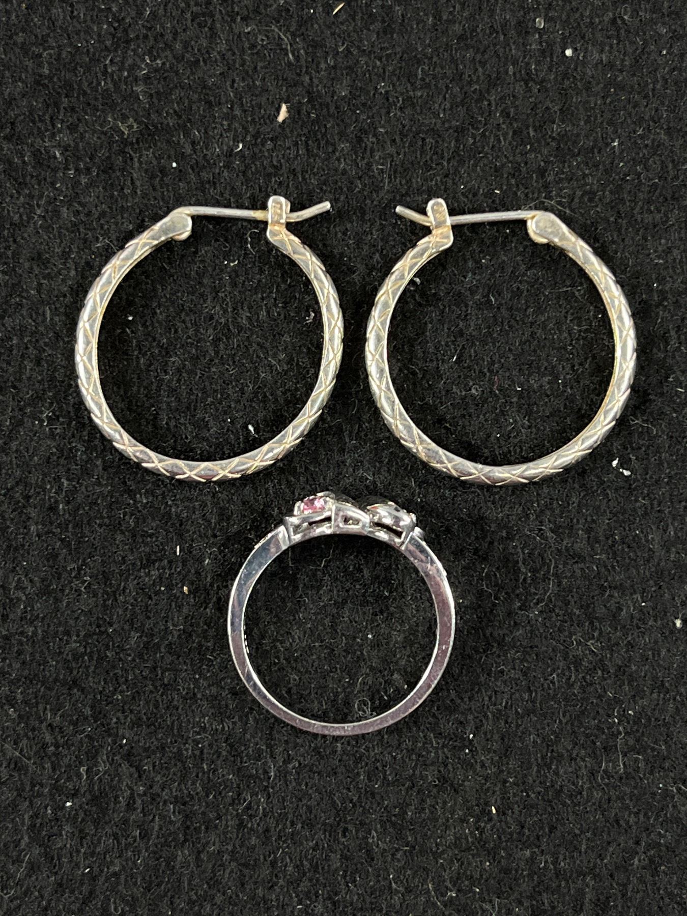 Pair of Sterling Silver Hoop Earrings & Sterling Silver Elise May Ring Size 6