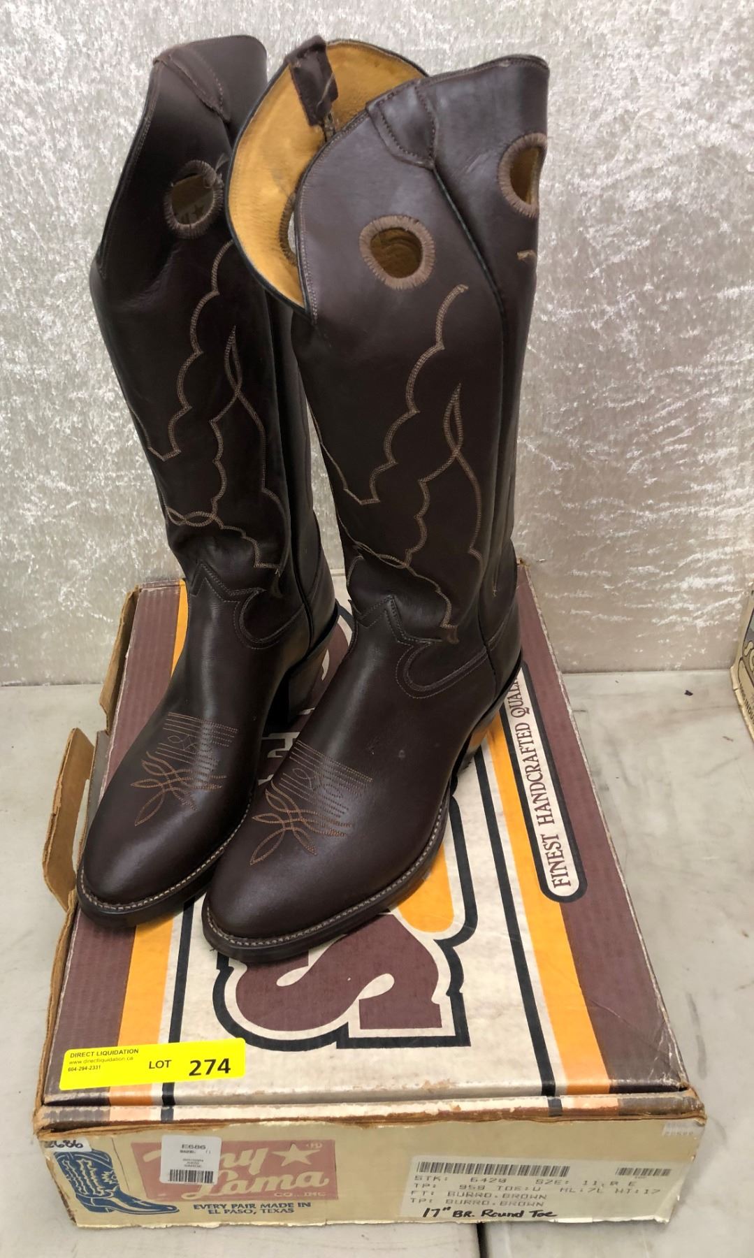 Pair of Tony Lama burro brown 17" round toe cowboy boots size 11 (NOS)