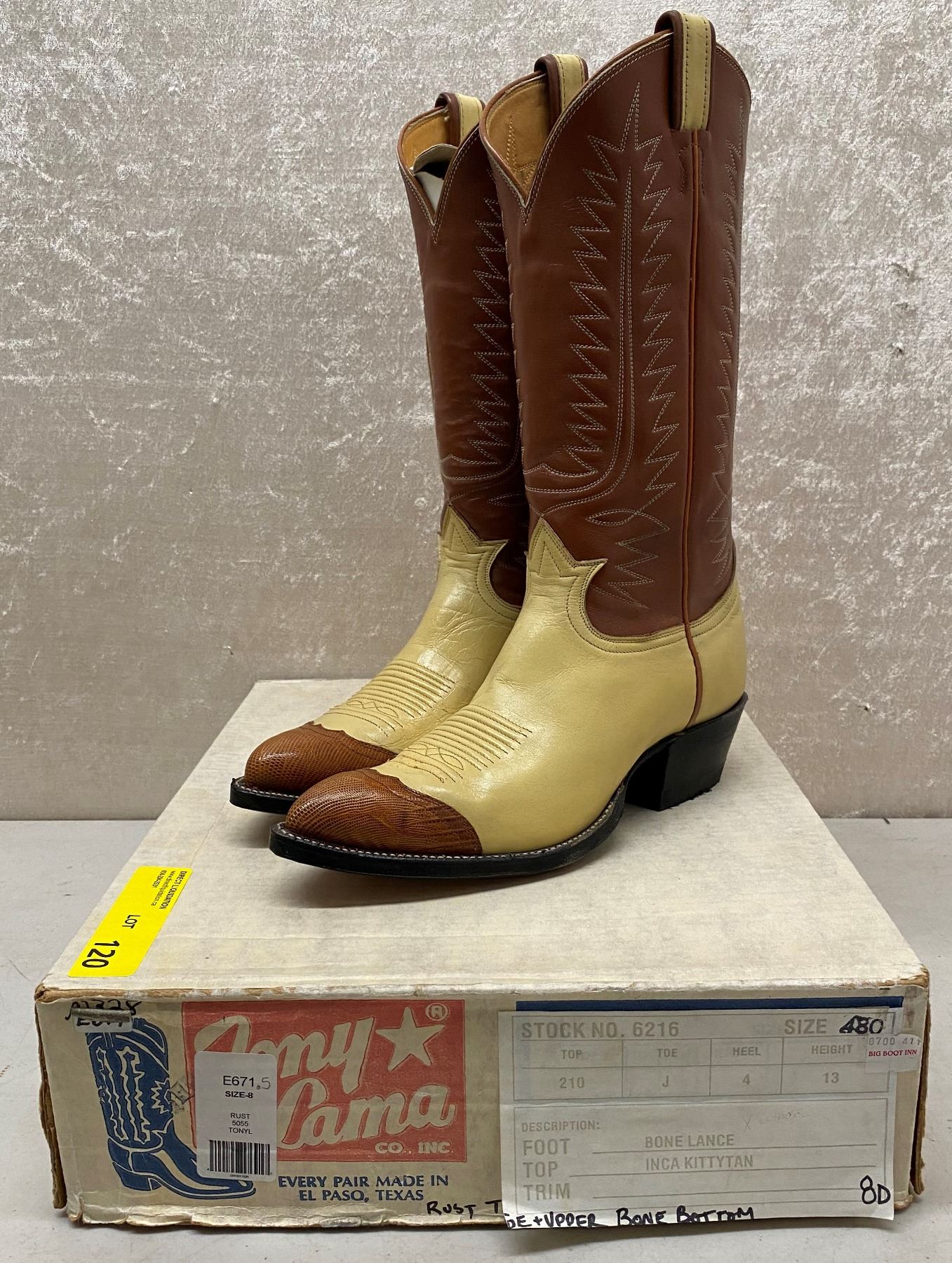 Pair Tony Lama rust toe/upper bone bottom cowboy boots size 8 (NOS)