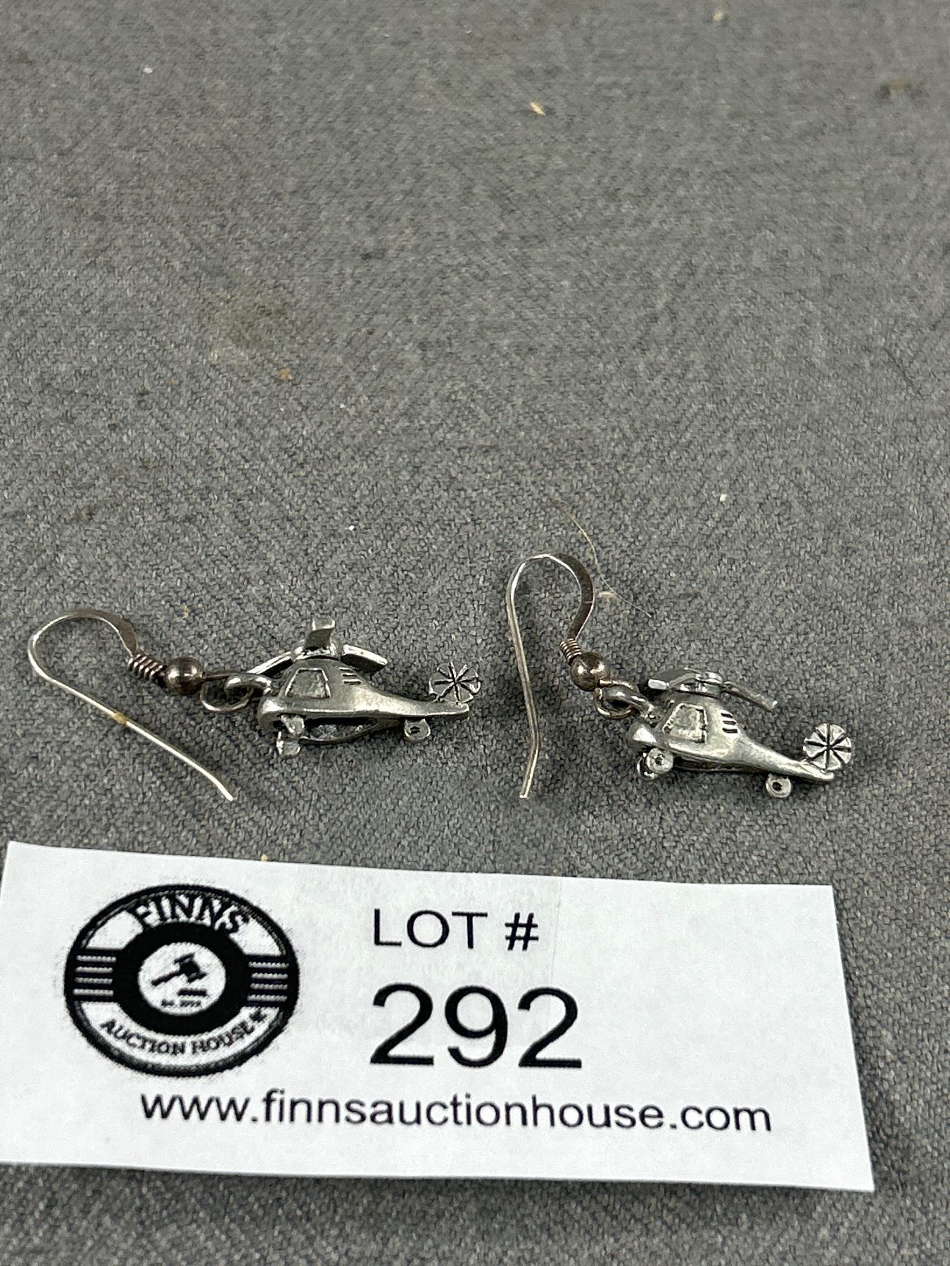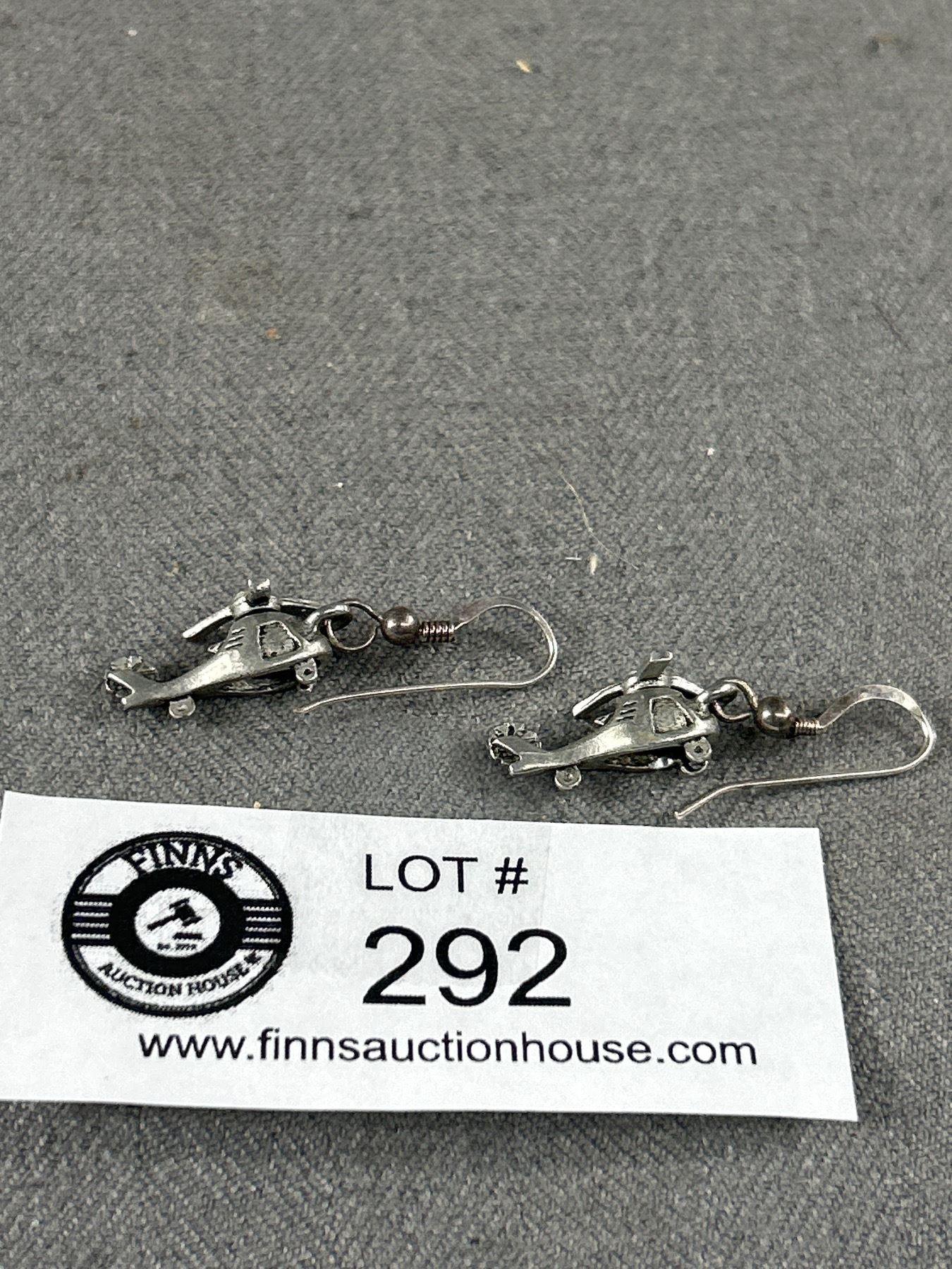 Pair of Unusual Silver Helicopter w/ Moving Propellar Dangle Earrings