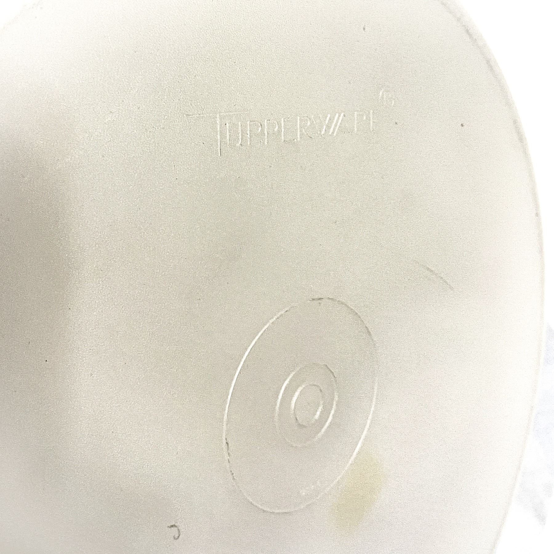 et of two vintage plastic cake carriers including one classic Tupperware carrier in white with harvest gold base and handle, and one unmarked blue and white dome-style carrier. Both feature secure locking bases and ample height for layered cakes or desserts—perfect for retro kitchen lovers or practical vintage storage.