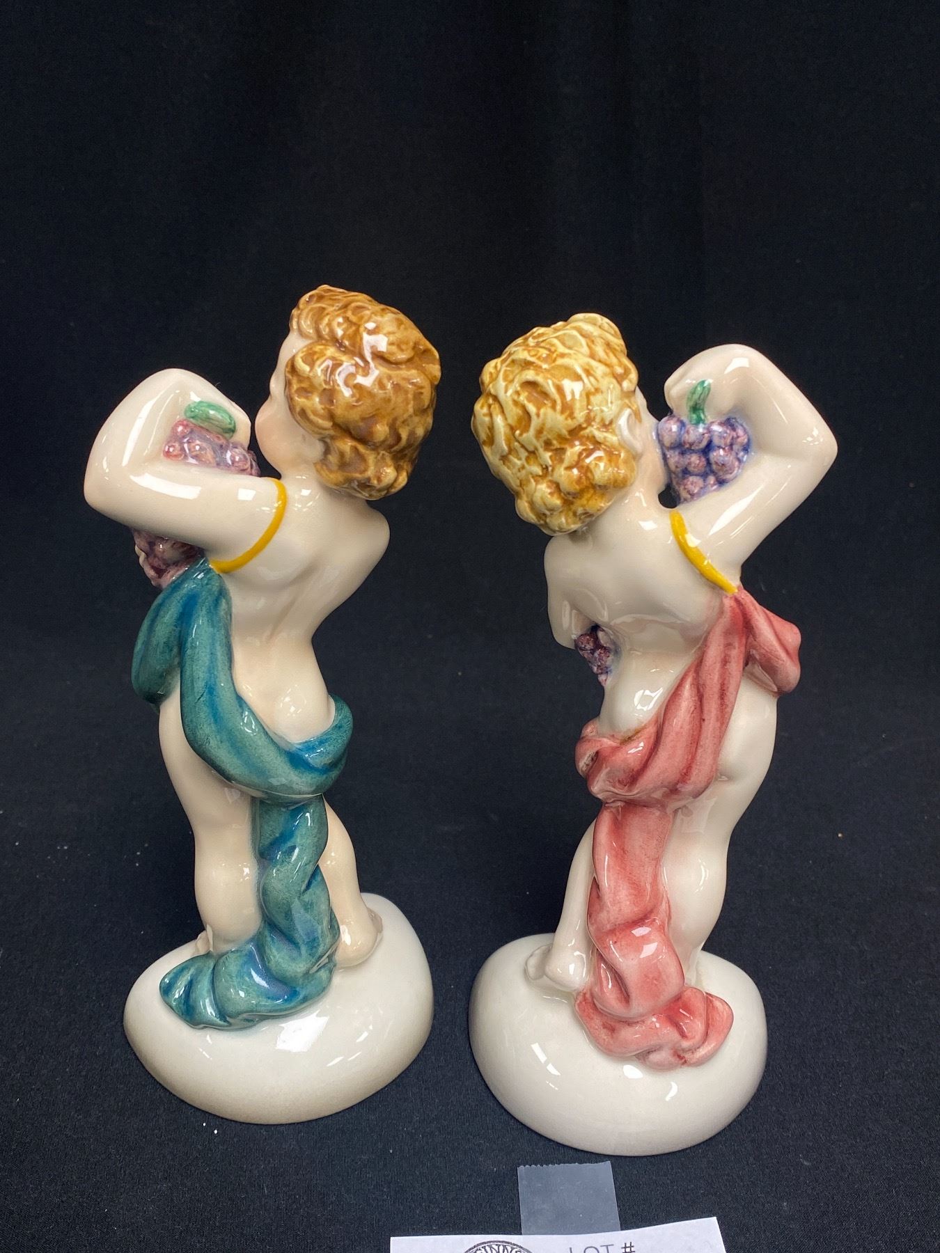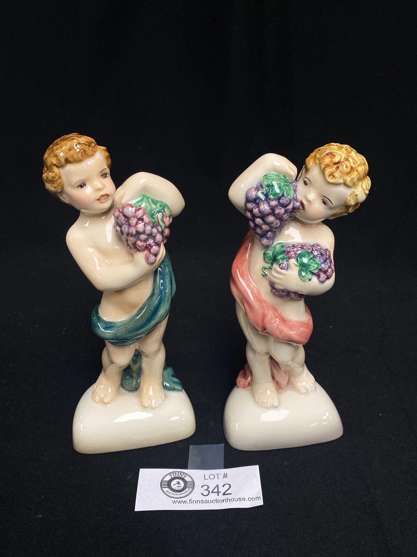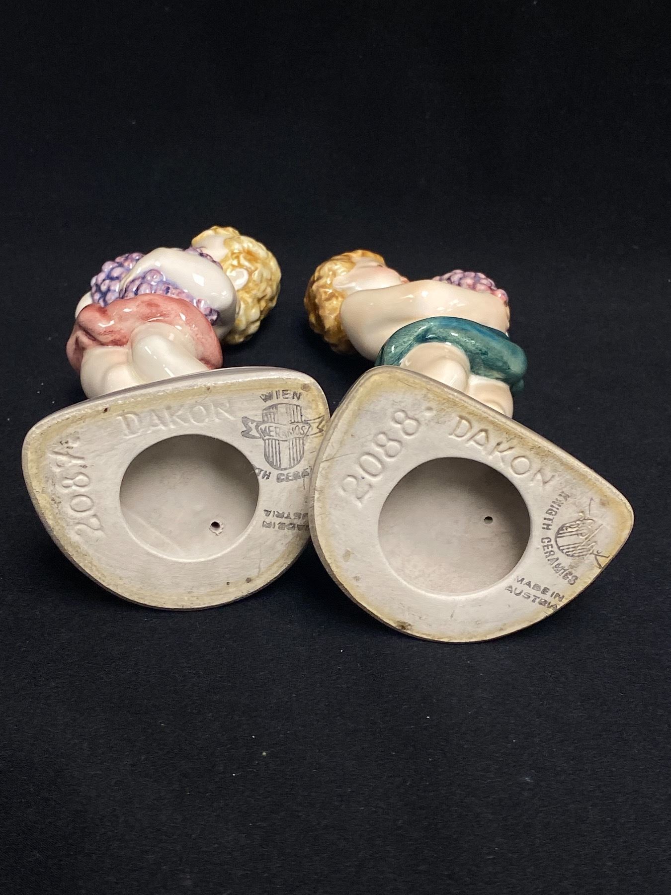 Pair of Vintage Dakon Porcelain Made in Austria Children With Grapes