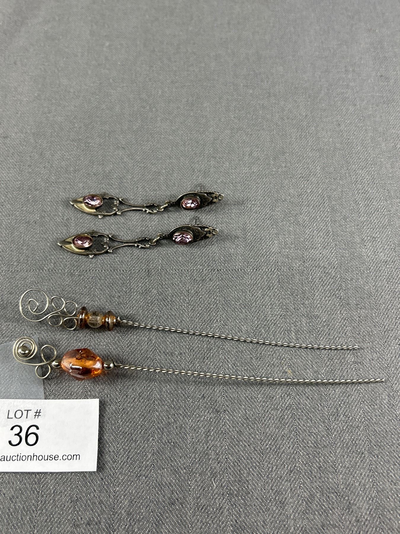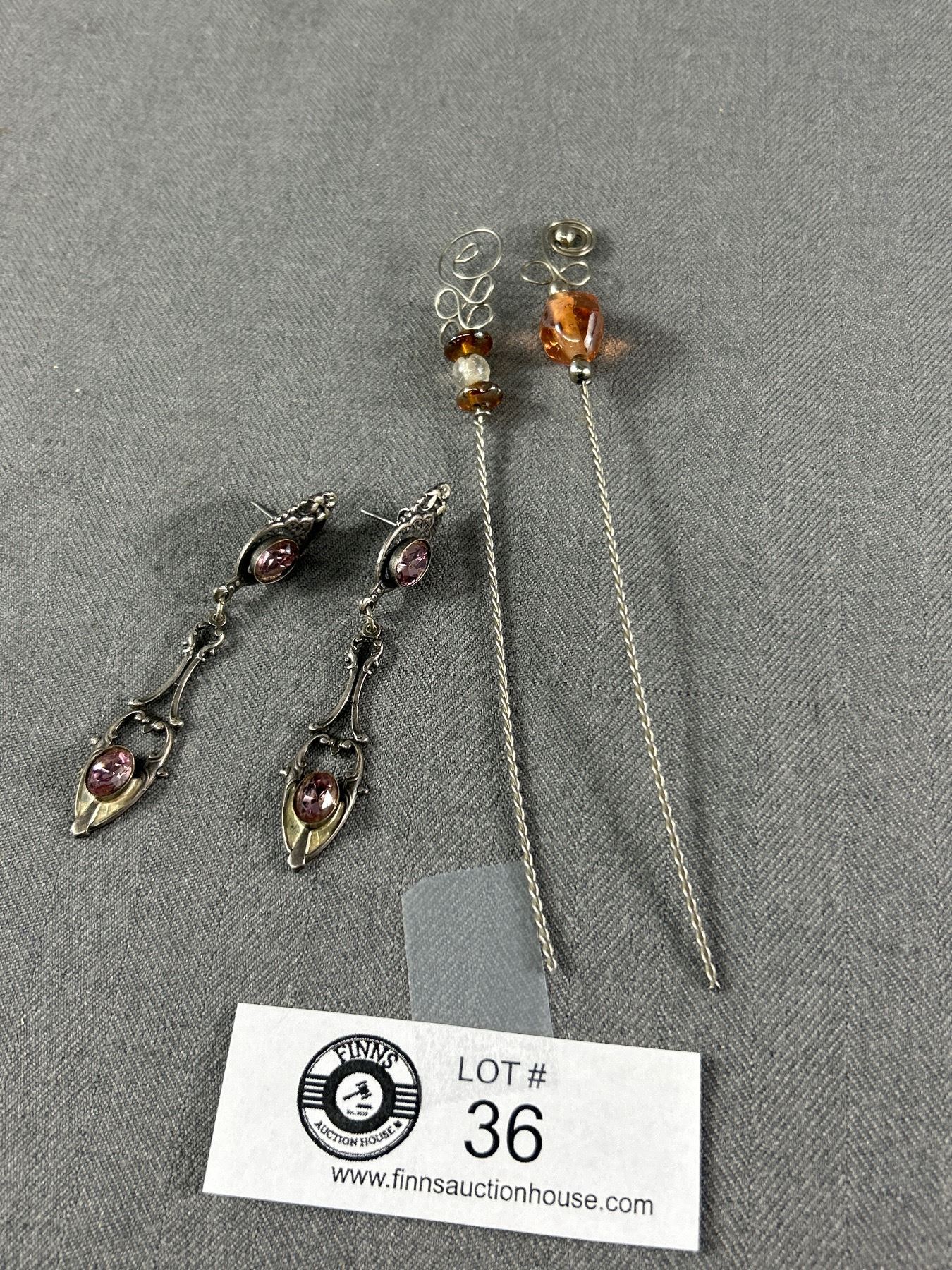 Pair of Vintage Dangle Earrings and 2 Silver Hat Pins